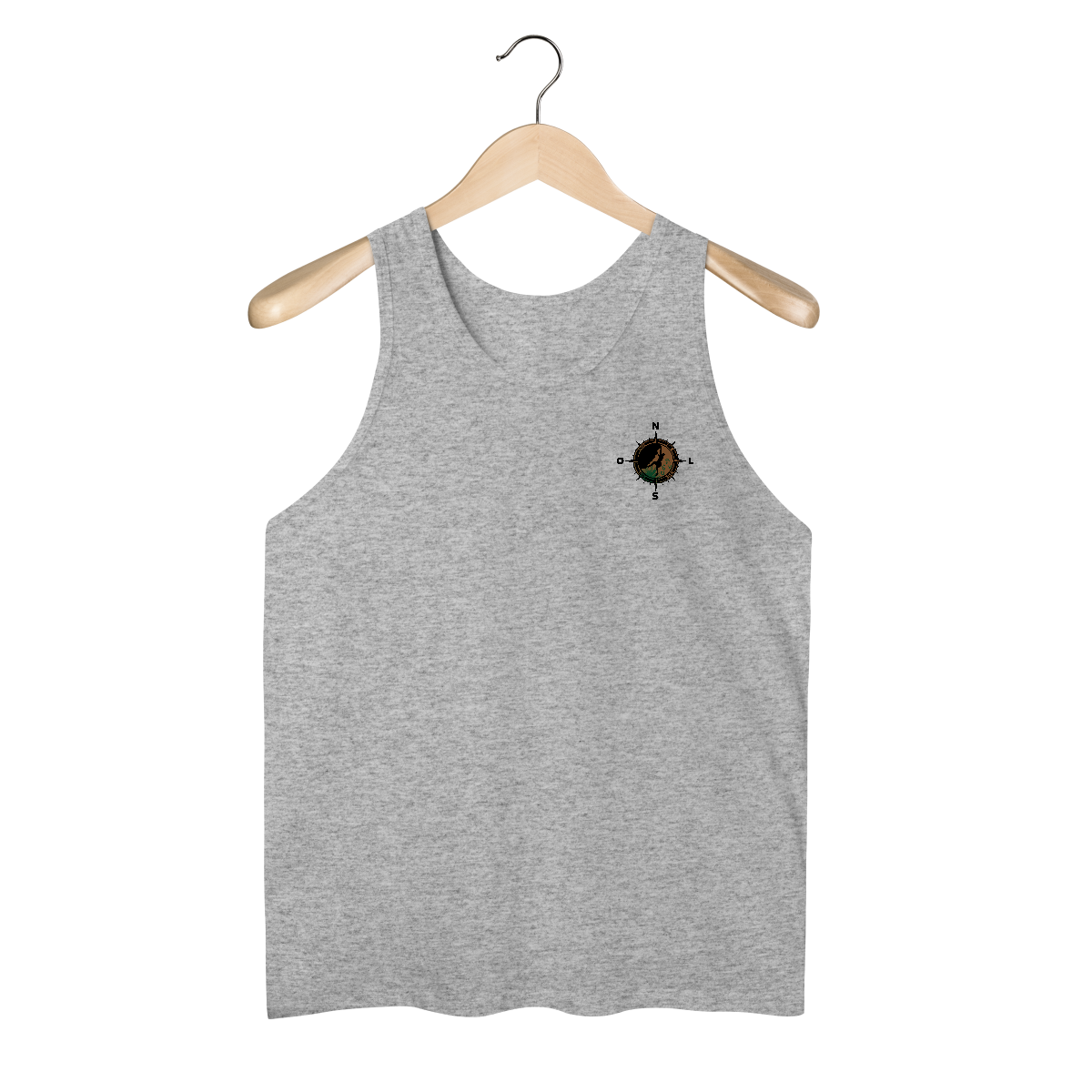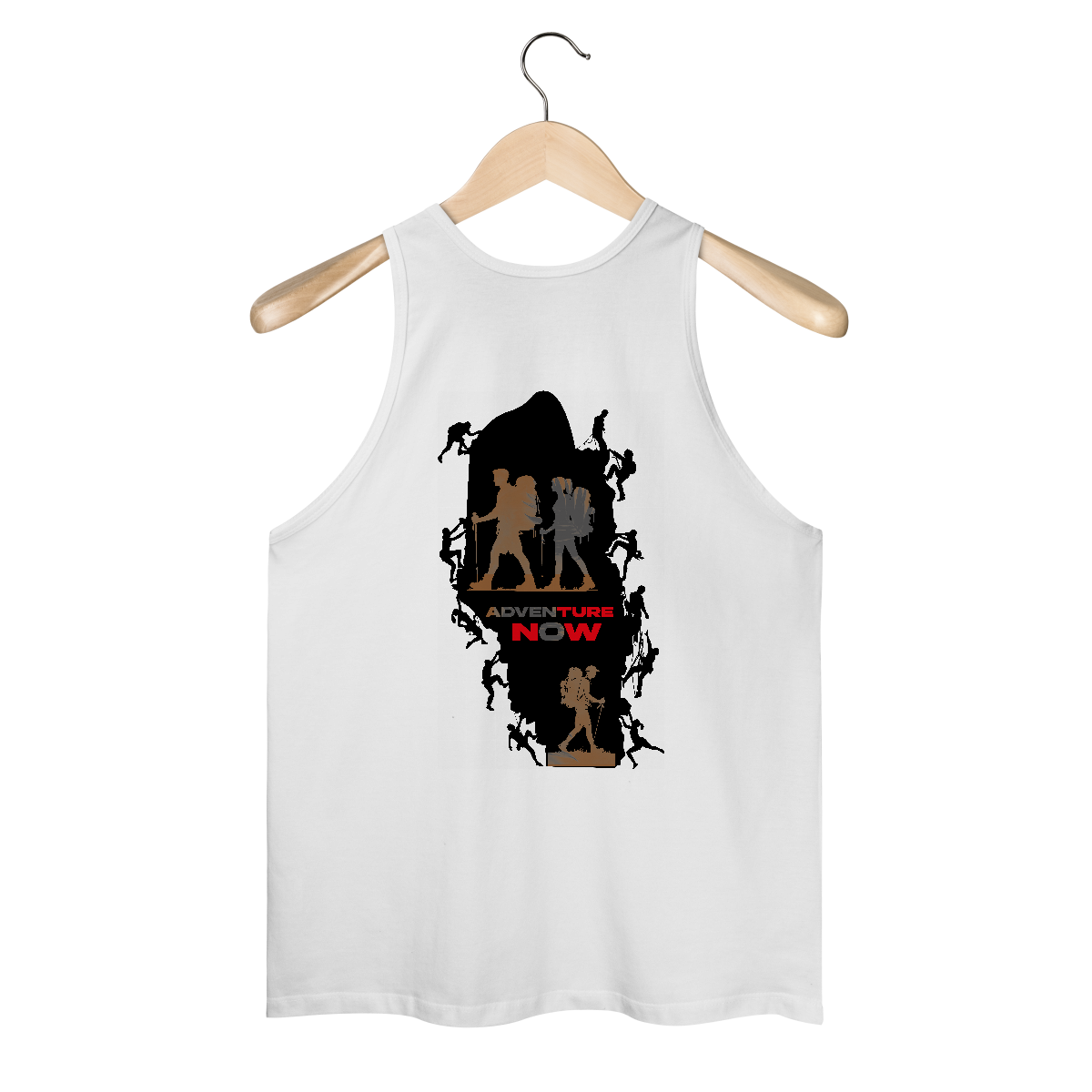 Essa estampa é um convite visual à liberdade e ao espírito aventureiro. Em destaque, três silhuetas em tons terrosos representam homens e mulheres em trilha, equipados com mochilas cargueiras e bastões de caminhada — um retrato fiel dos exploradores modernos.