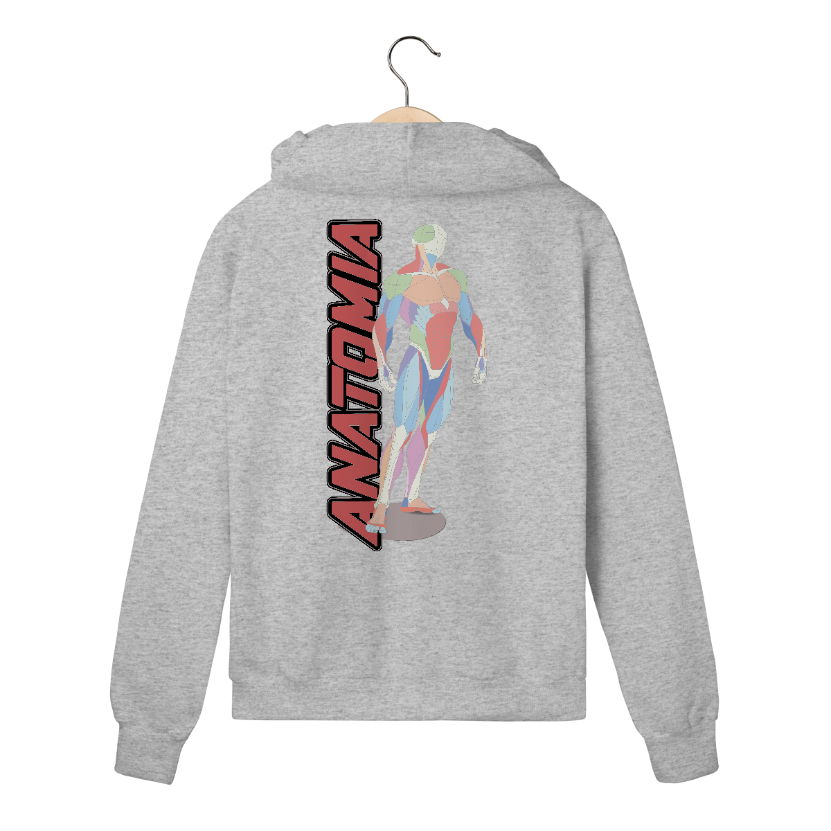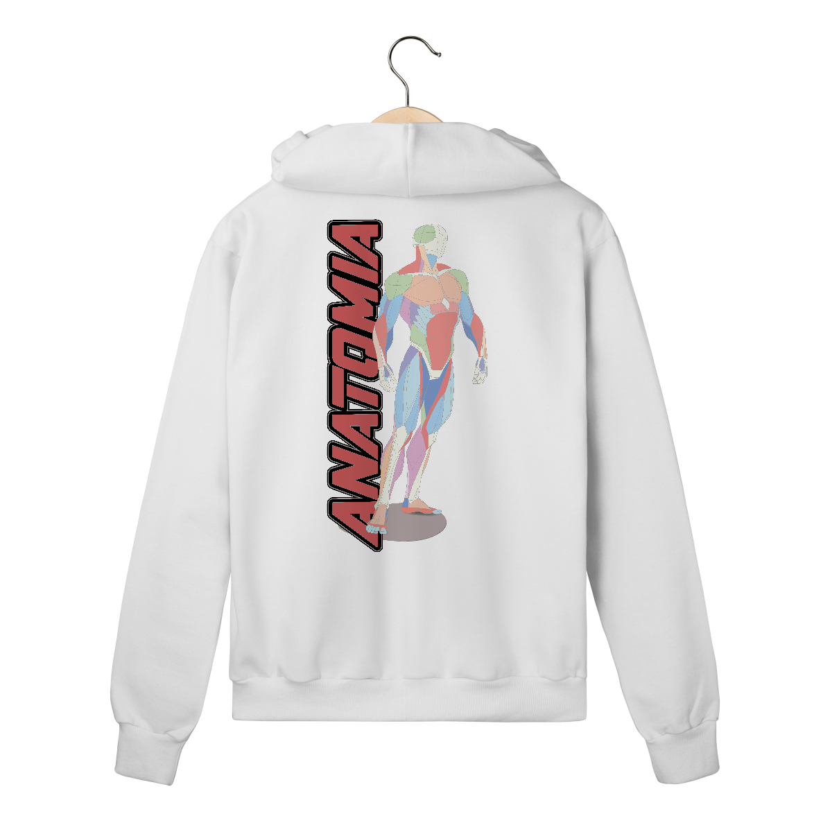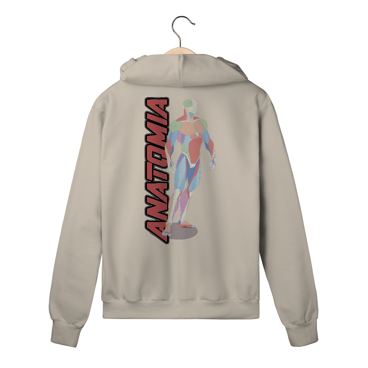 • Ilustração limpa, de traços técnicos e cores suaves, remetendo a cartazes de estudo de anatomia clássicos.