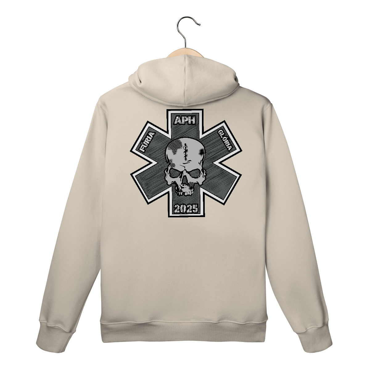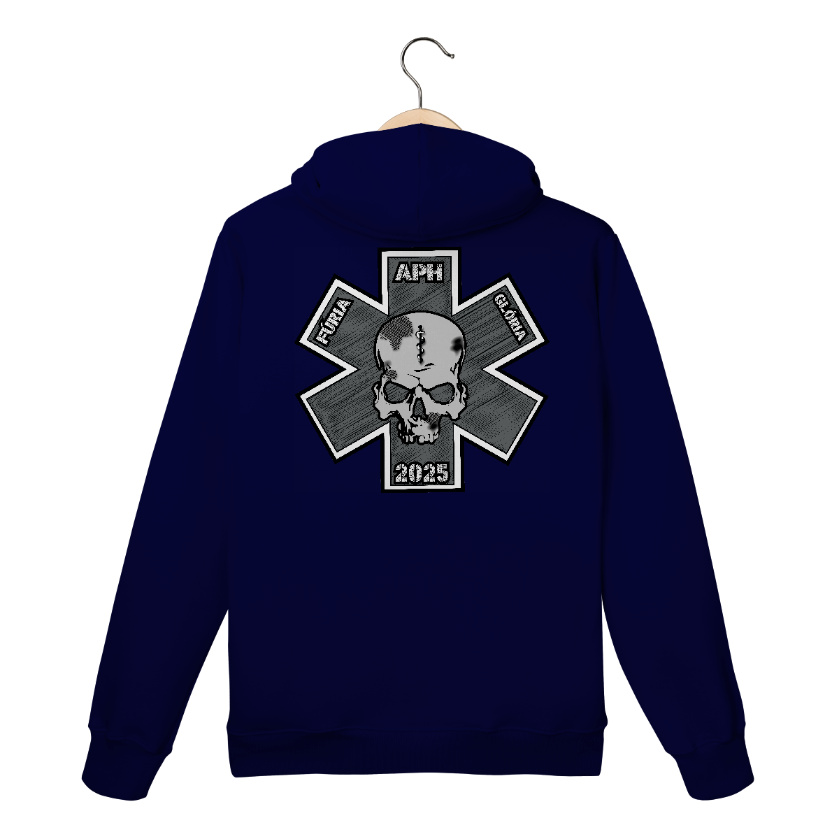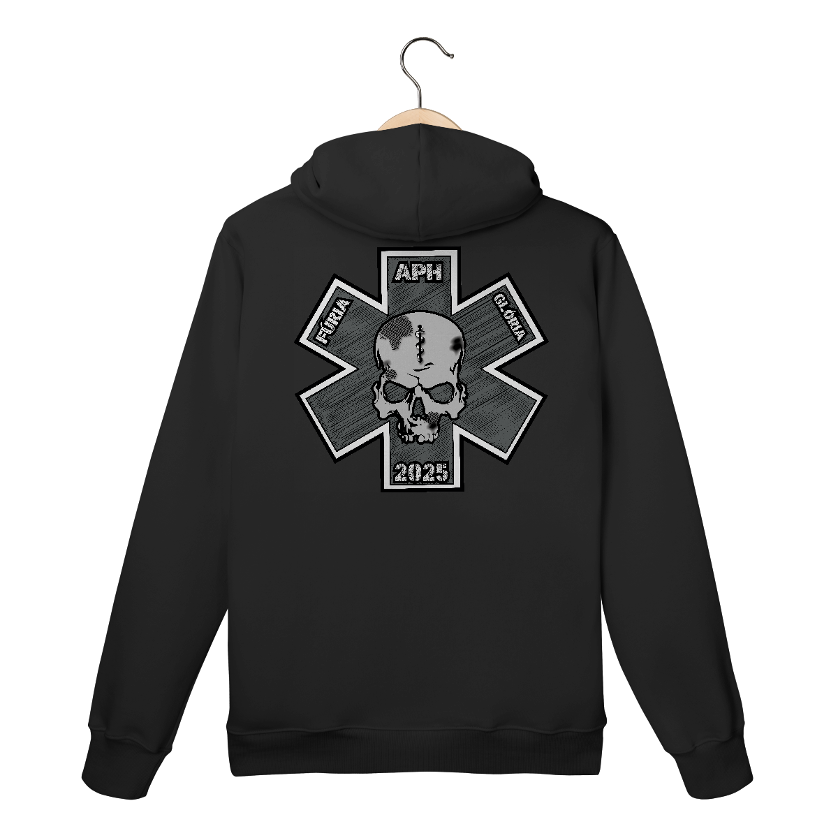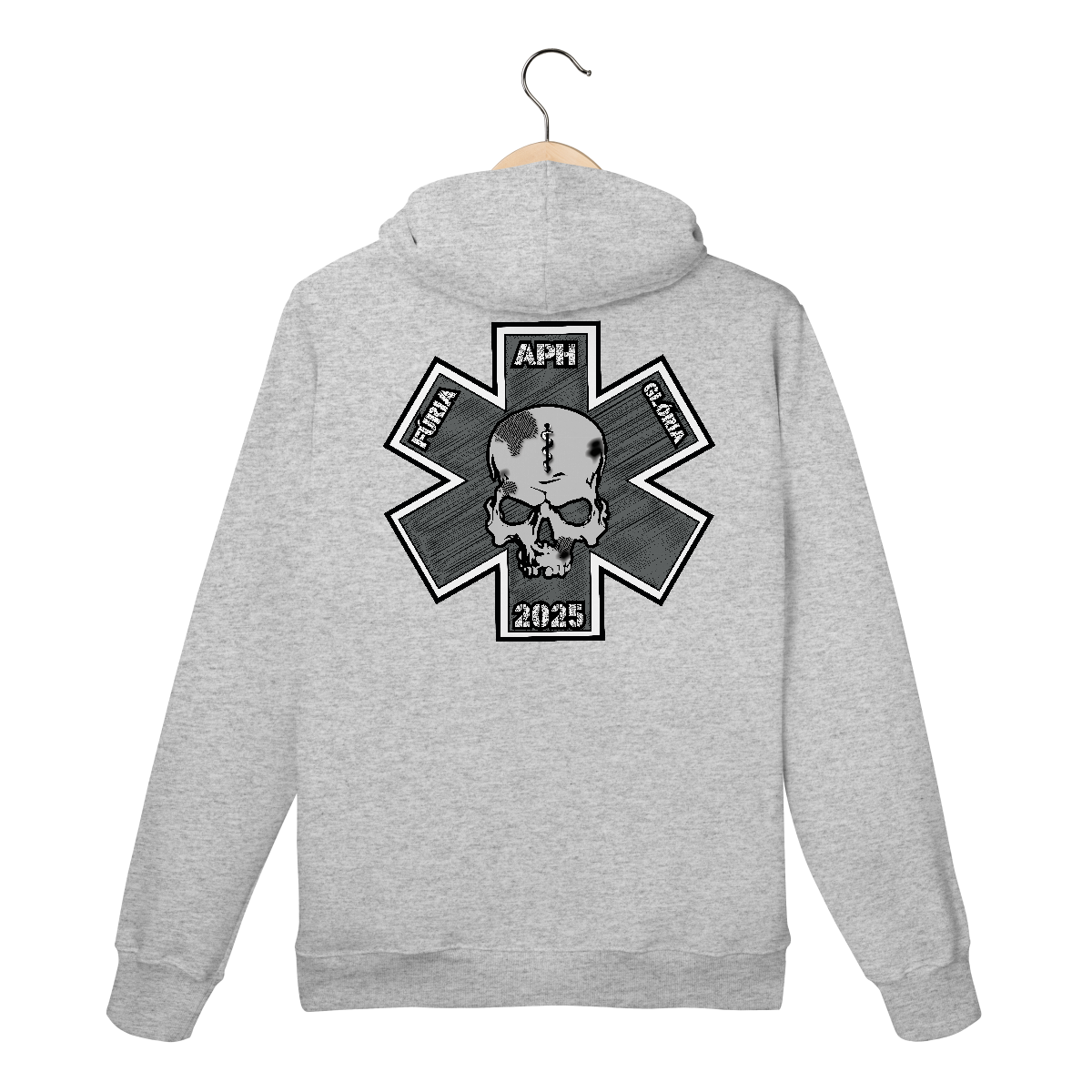 • Cruz da Vida estilizada em tons de cinza com sombreamento hachurado, representando o atendimento pré-hospitalar (APH).