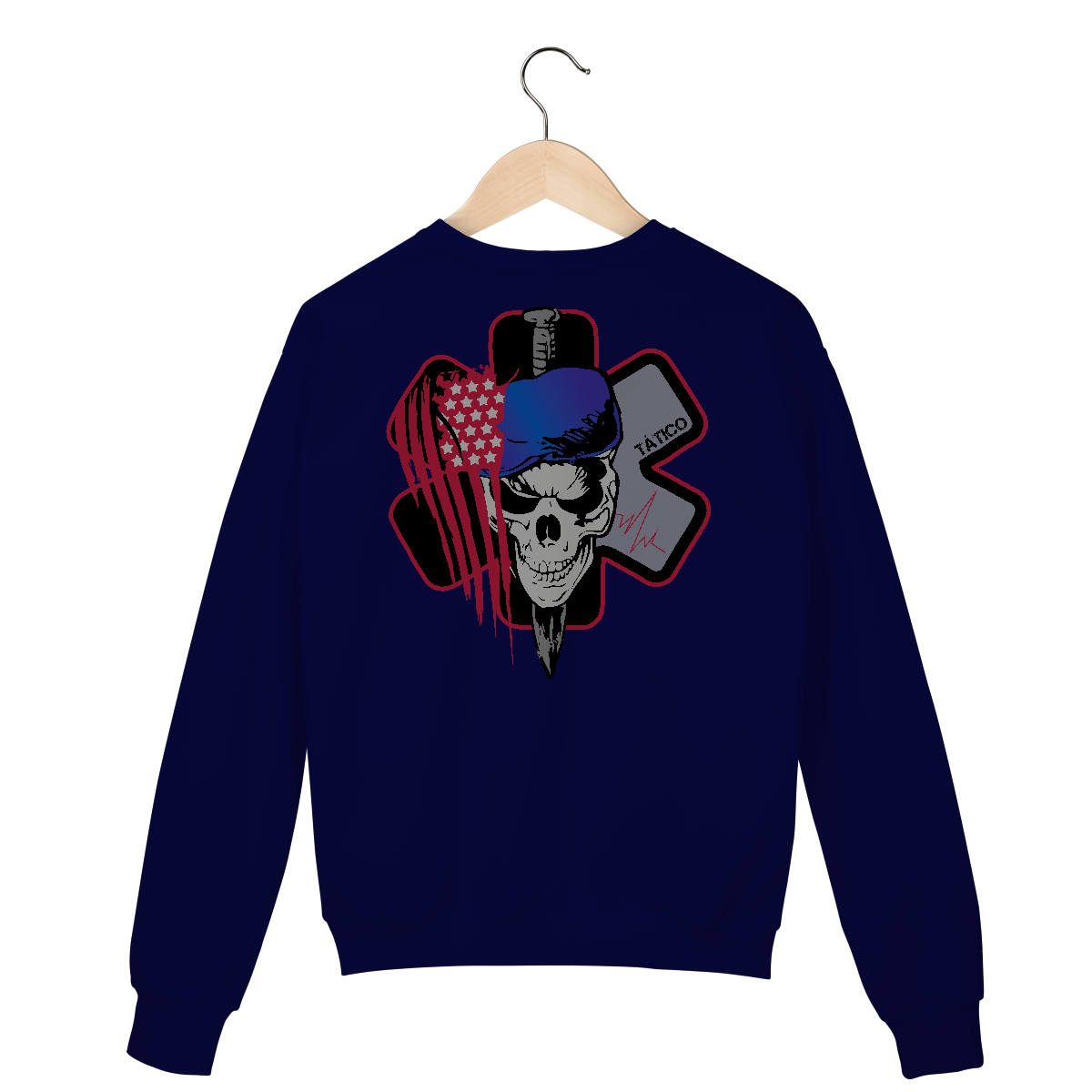 • O lado esquerdo traz uma bandeira americana estilizada e sangrando, reforçando uma estética combativa, muitas vezes usada em visuais militares e táticos.