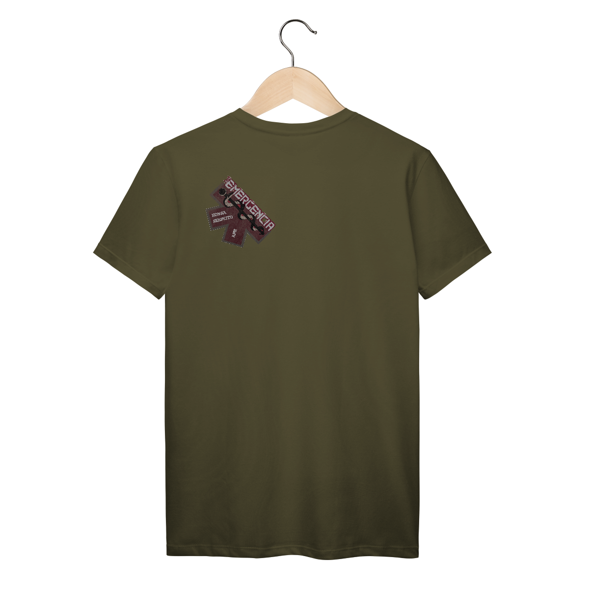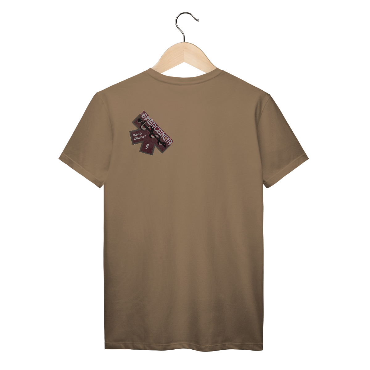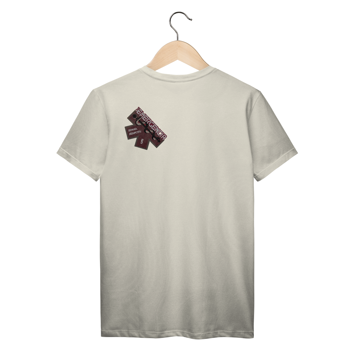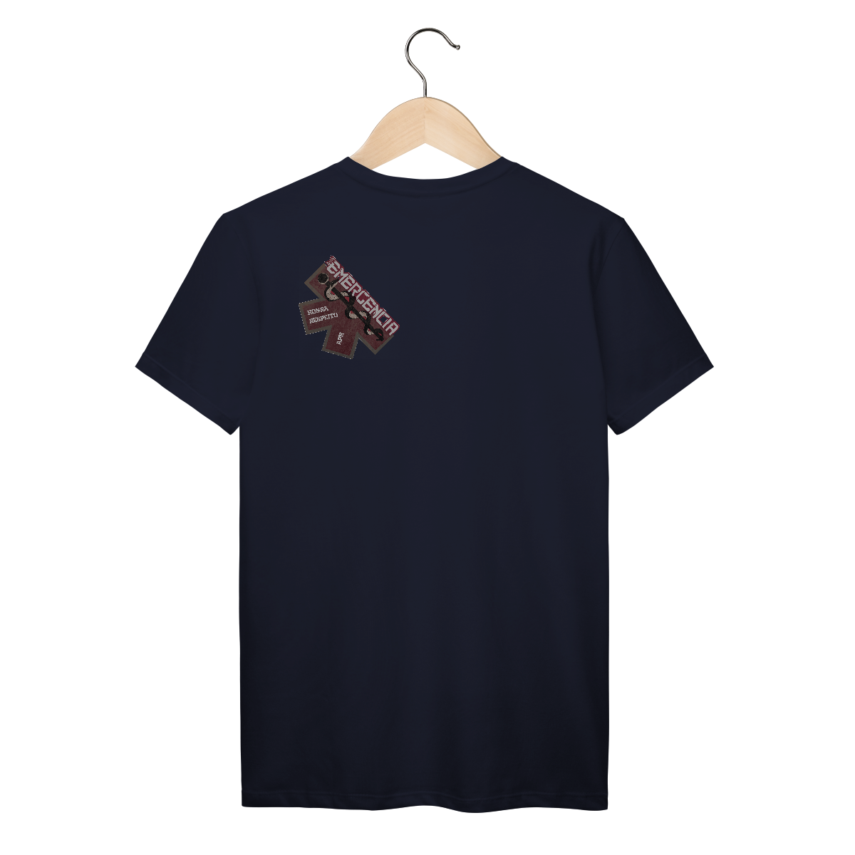 Uma estampa forte e simbólica com a estrela da vida como base, elemento universalmente reconhecido no socorro de emergência. O bastão de Asclépio (símbolo da medicina) aparece em destaque, transmitindo a missão de salvar vidas. As palavras “Honra” e “Respeito” reafirmam os valores que guiam cada profissional do APH, enquanto a palavra “EMERGÊNCIA” em tipografia forte e moderna destaca o impacto da função.