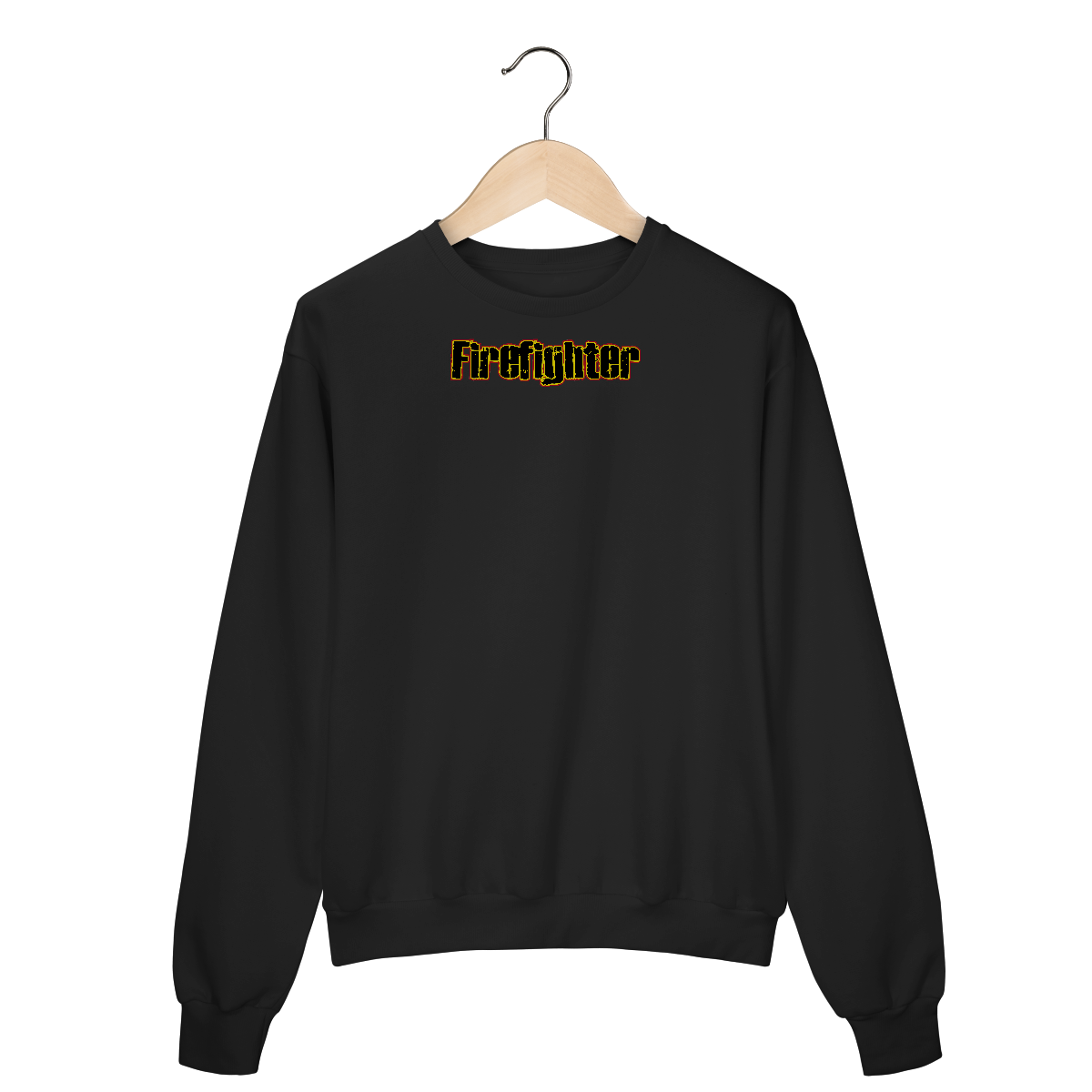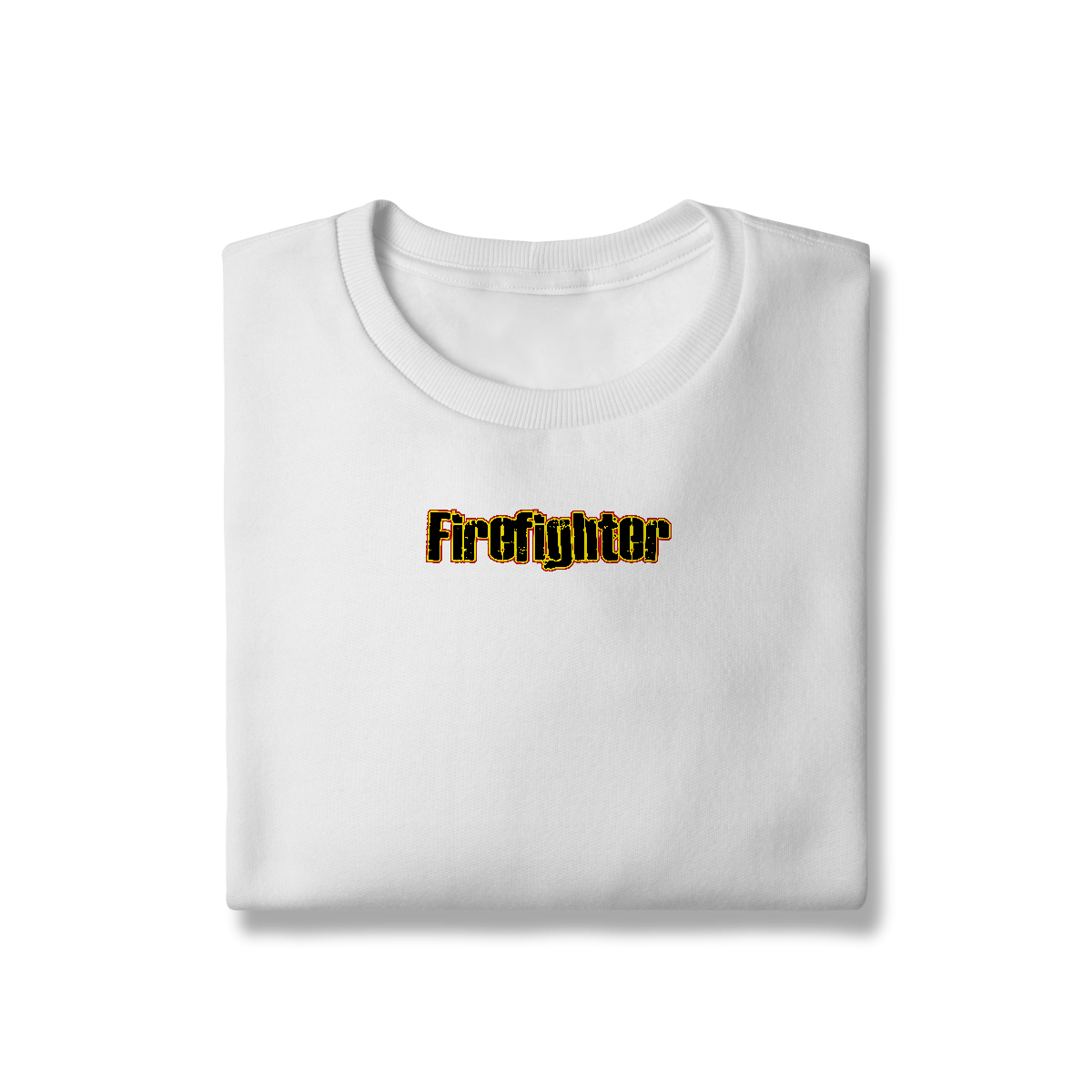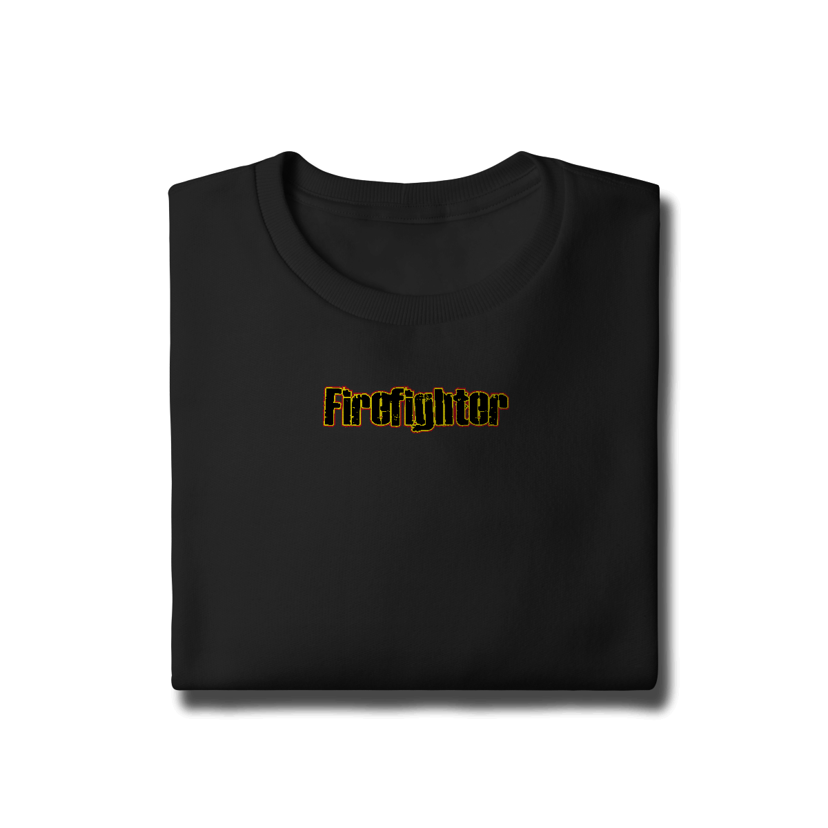 Letreiro impactante “Firefighter” com estilo grunge e bordas em fogo. Para quem vive intensamente a profissão.