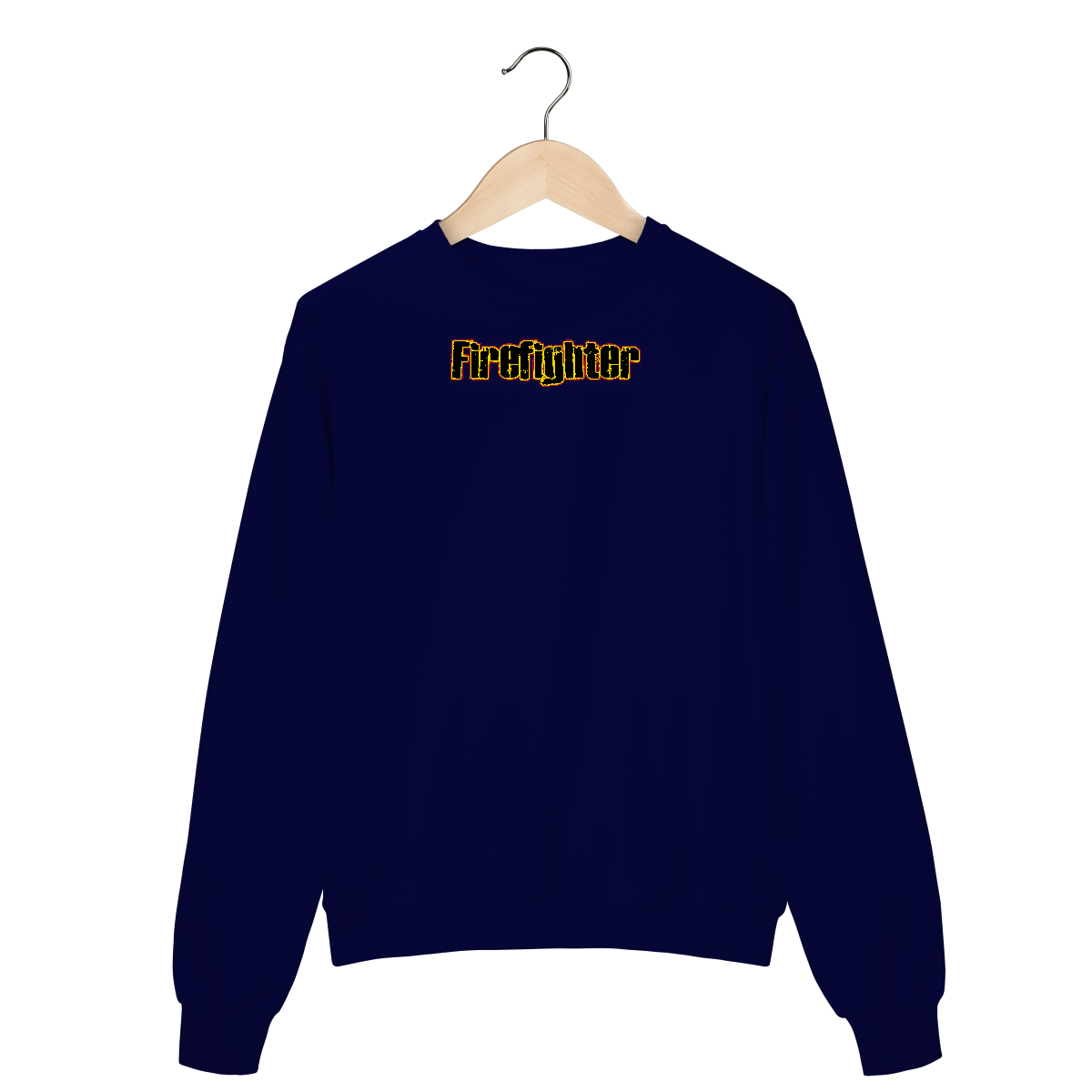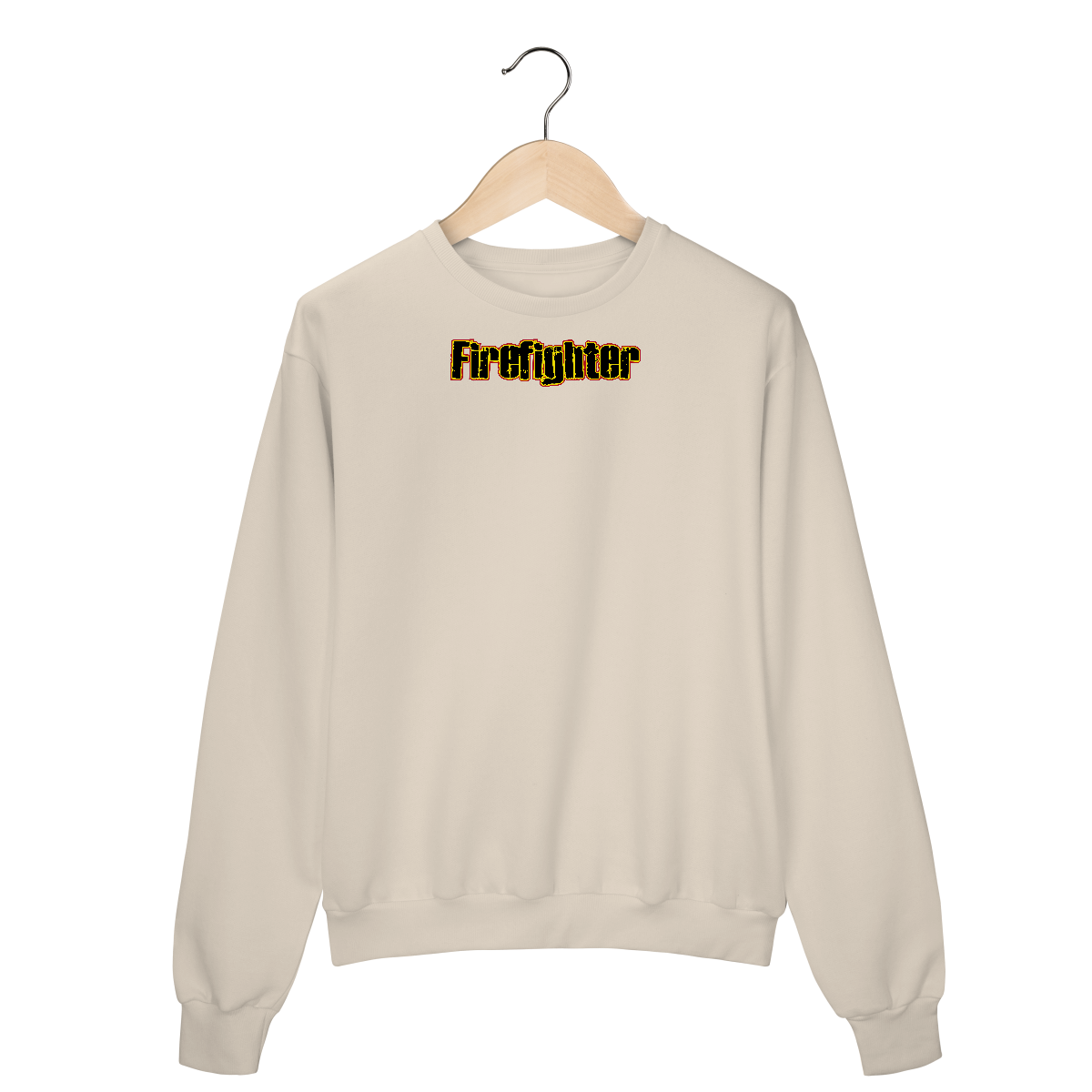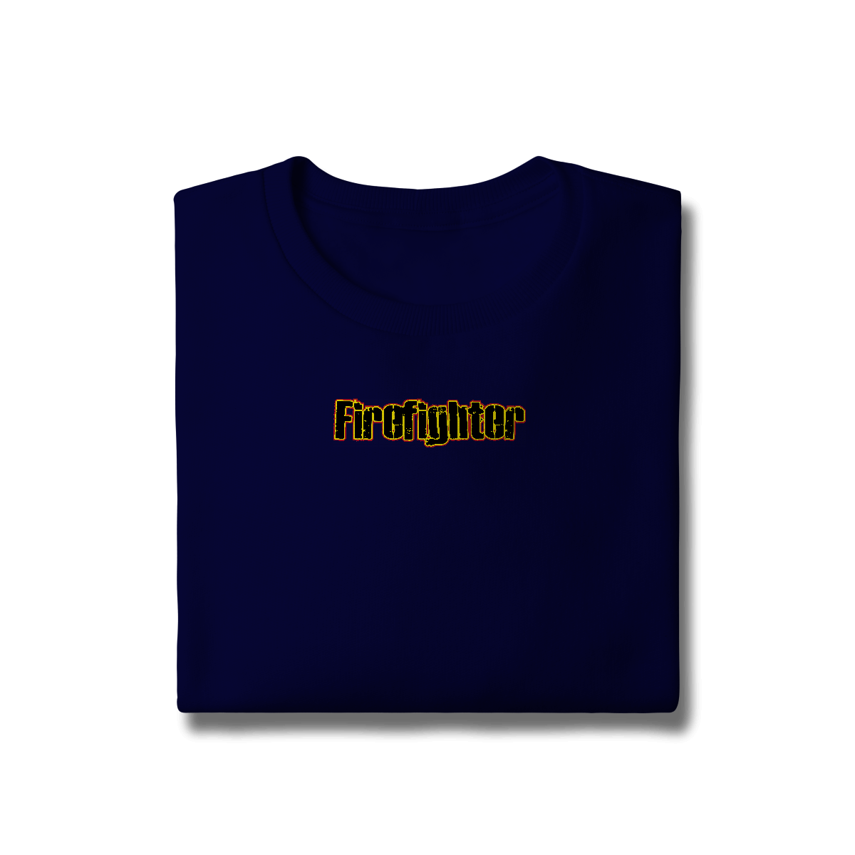 Letreiro impactante “Firefighter” com estilo grunge e bordas em fogo. Para quem vive intensamente a profissão.