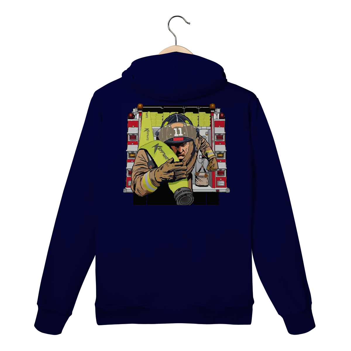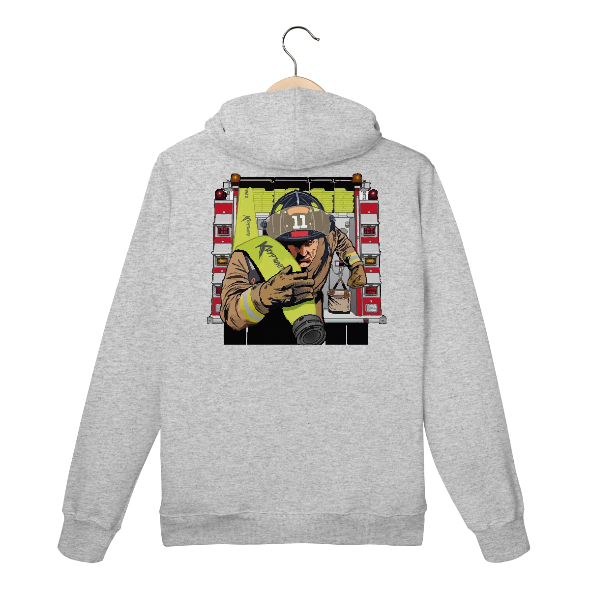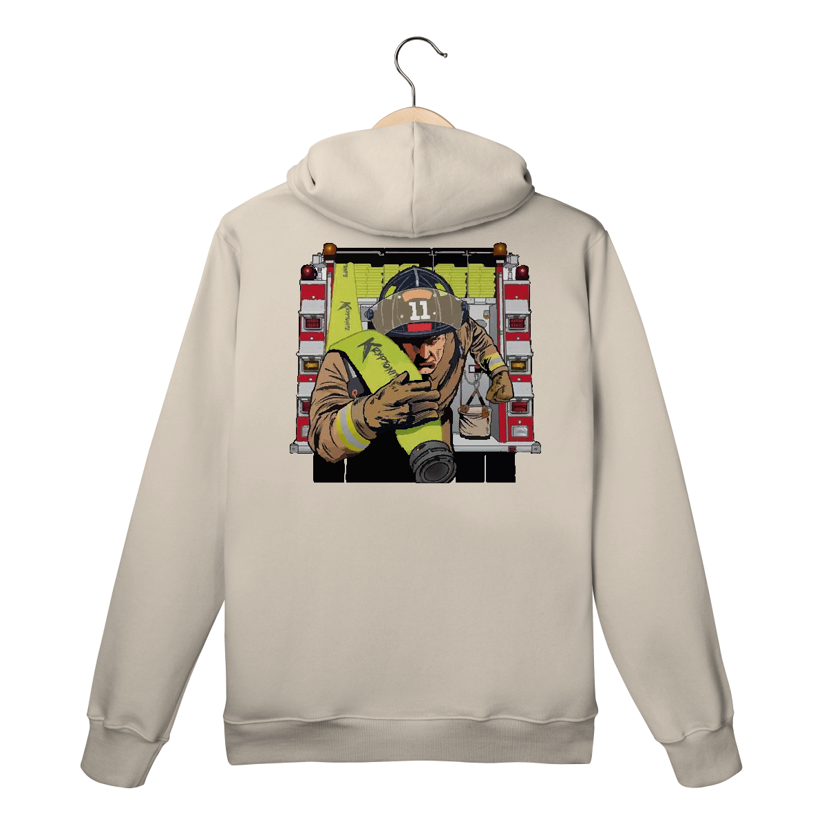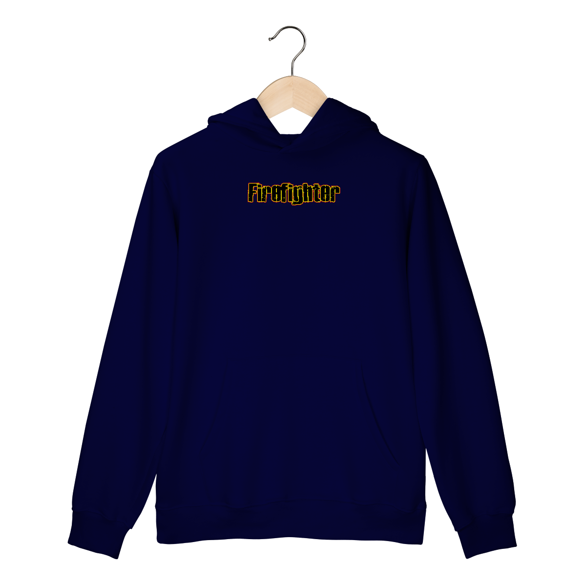 Letreiro impactante “Firefighter” com estilo grunge e bordas em fogo. Para quem vive intensamente a profissão.