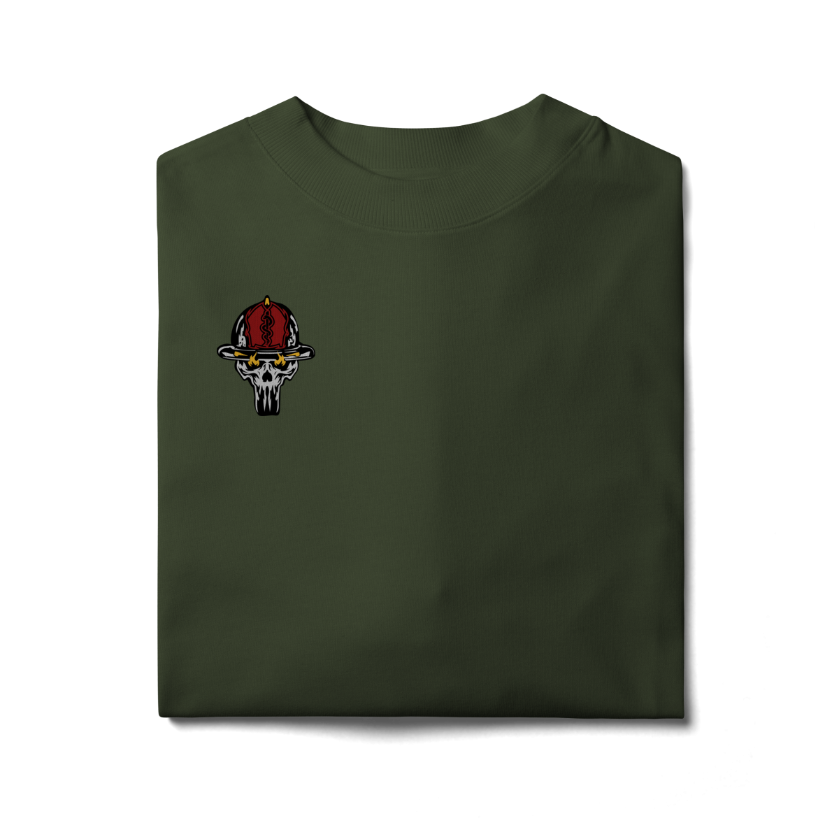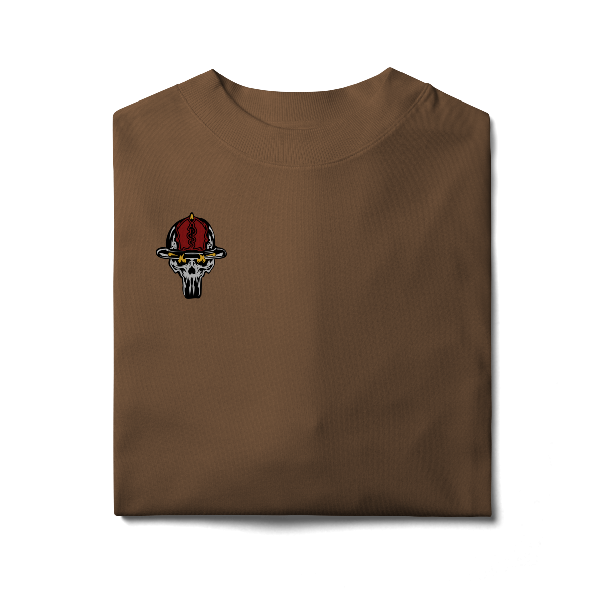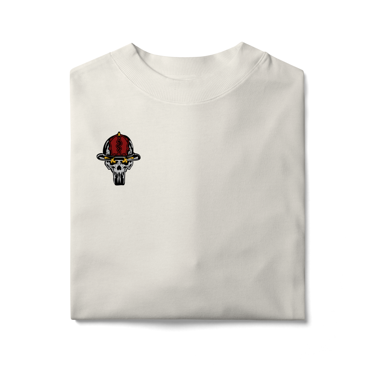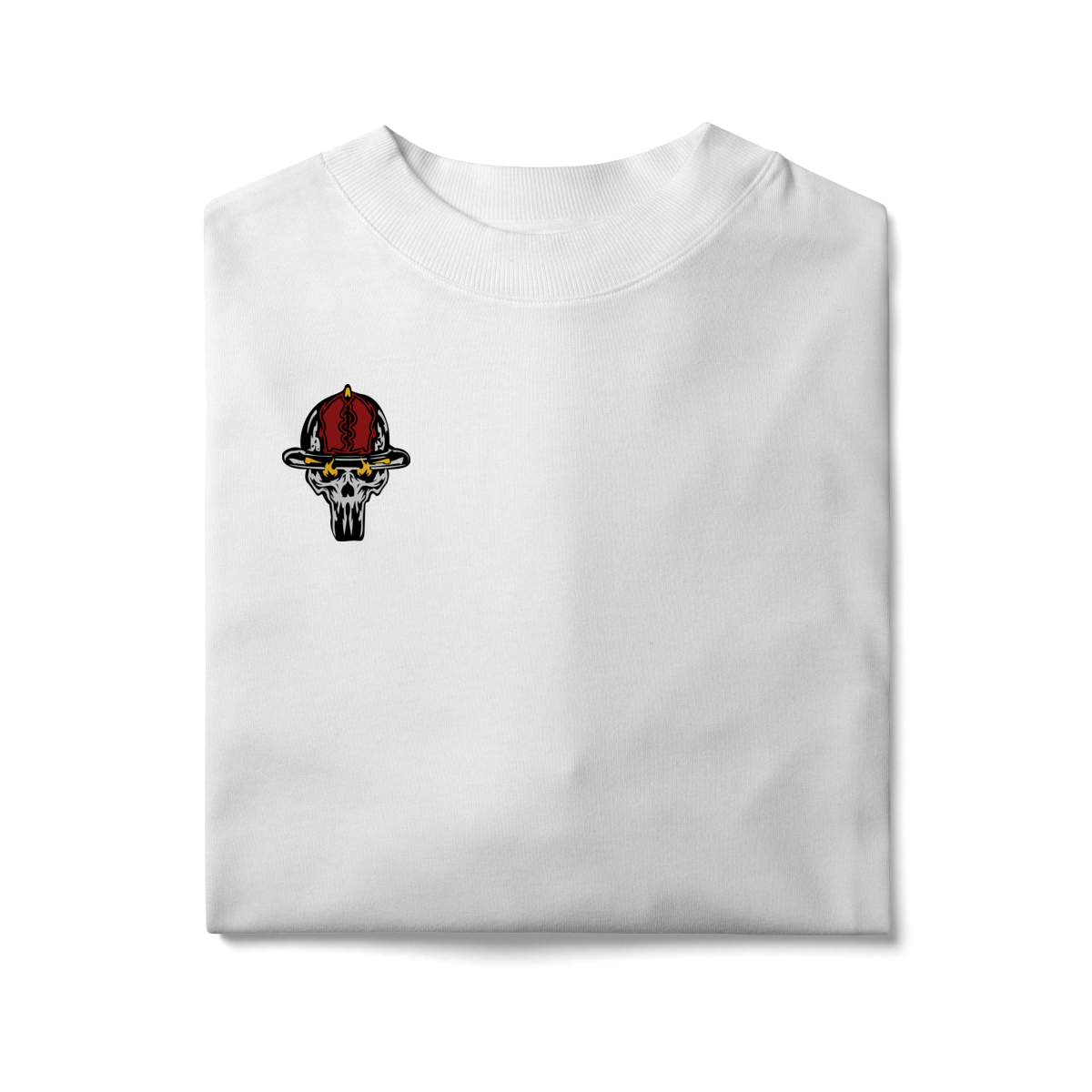 Na base, o lettering “Bombeiro – Caveira, Fogo e Brasil” completa o visual com identidade nacional, criando uma peça ideal para quem vive a profissão, honra a história e carrega o espírito de rua da tropa.