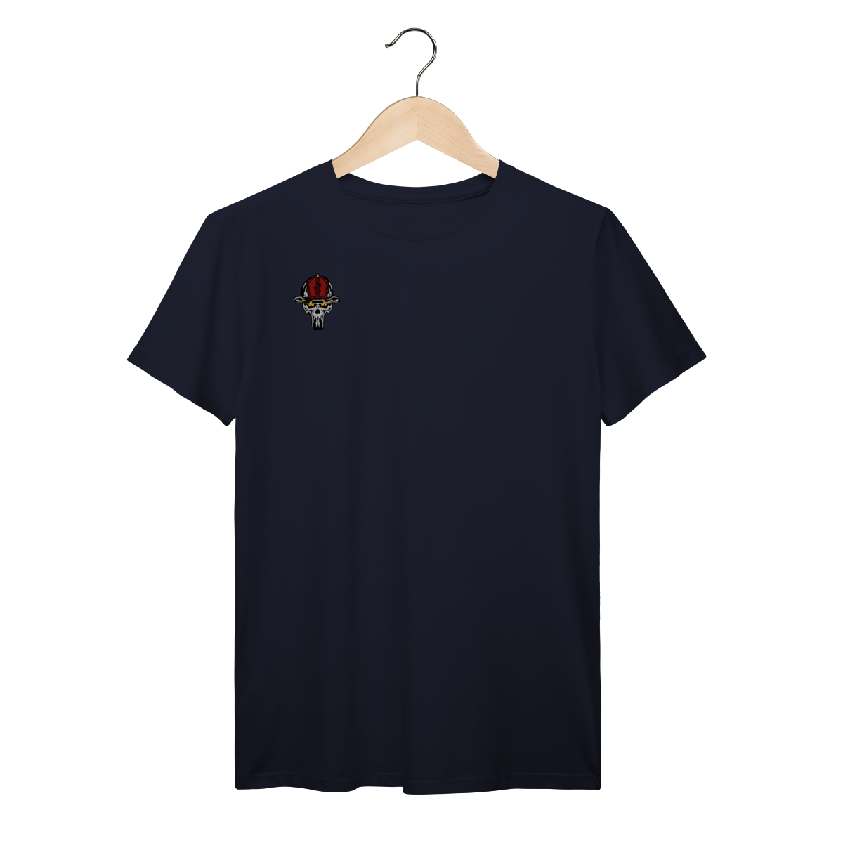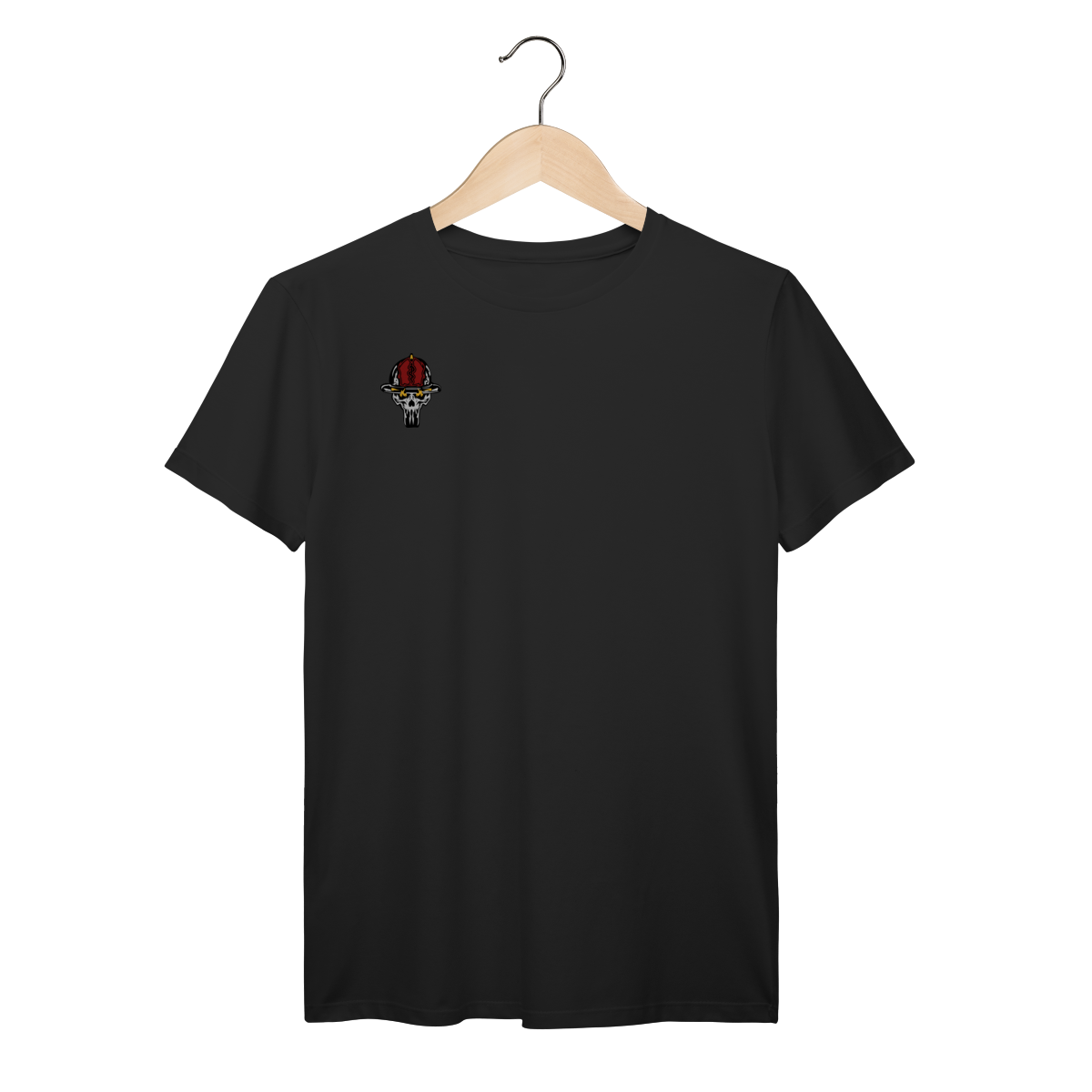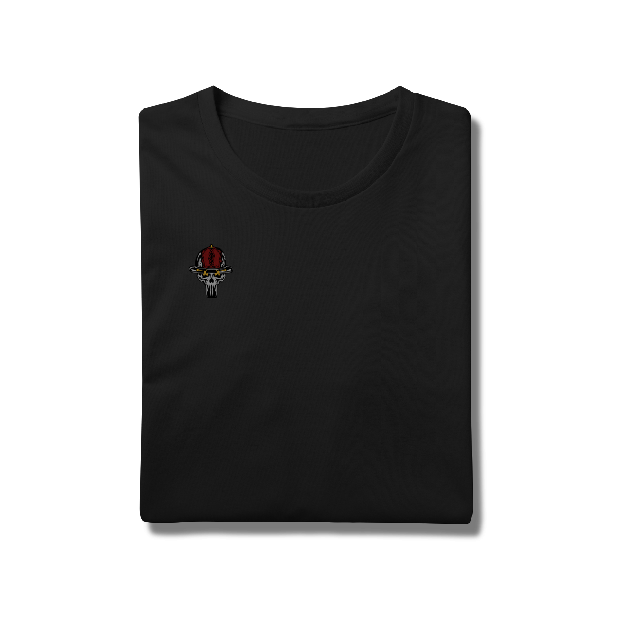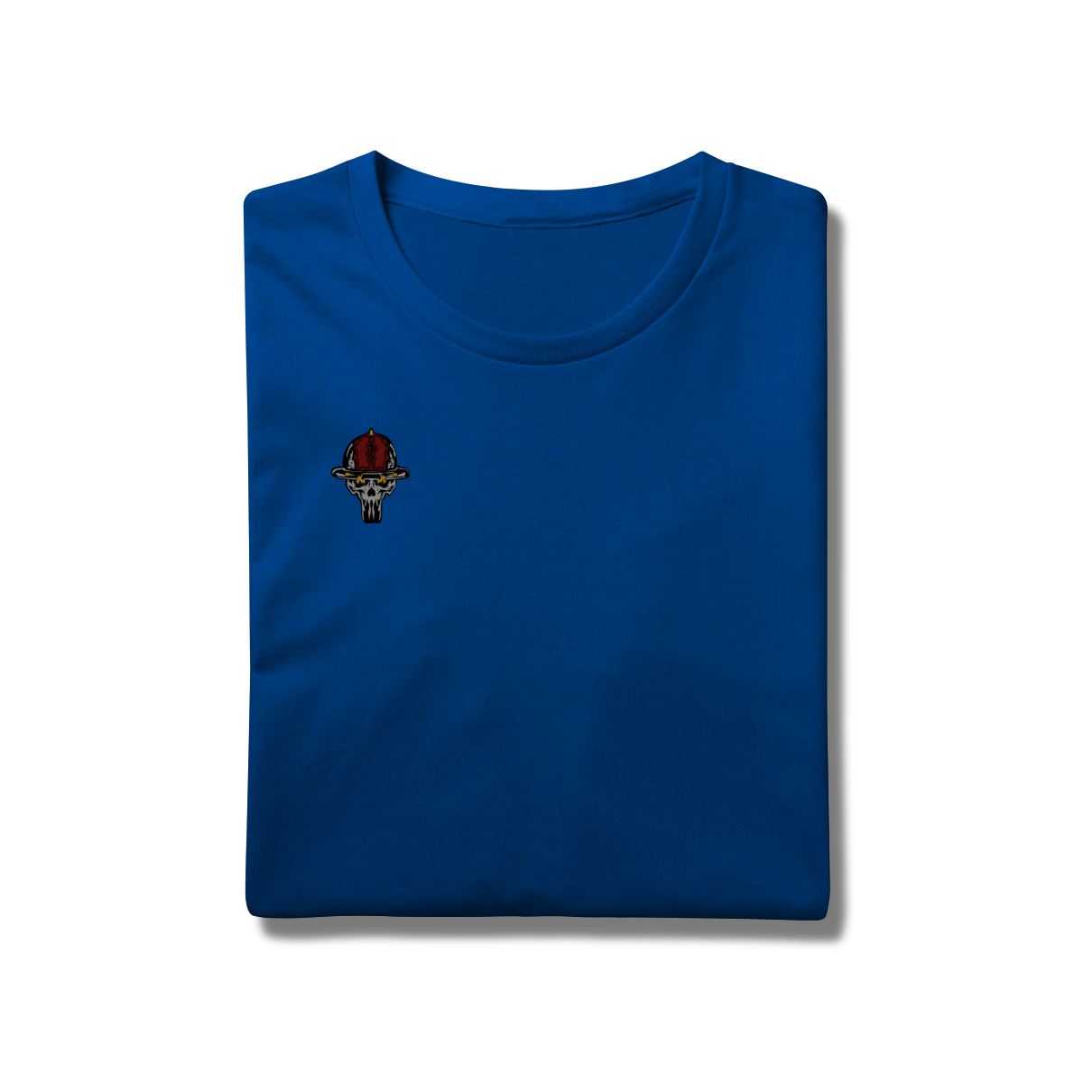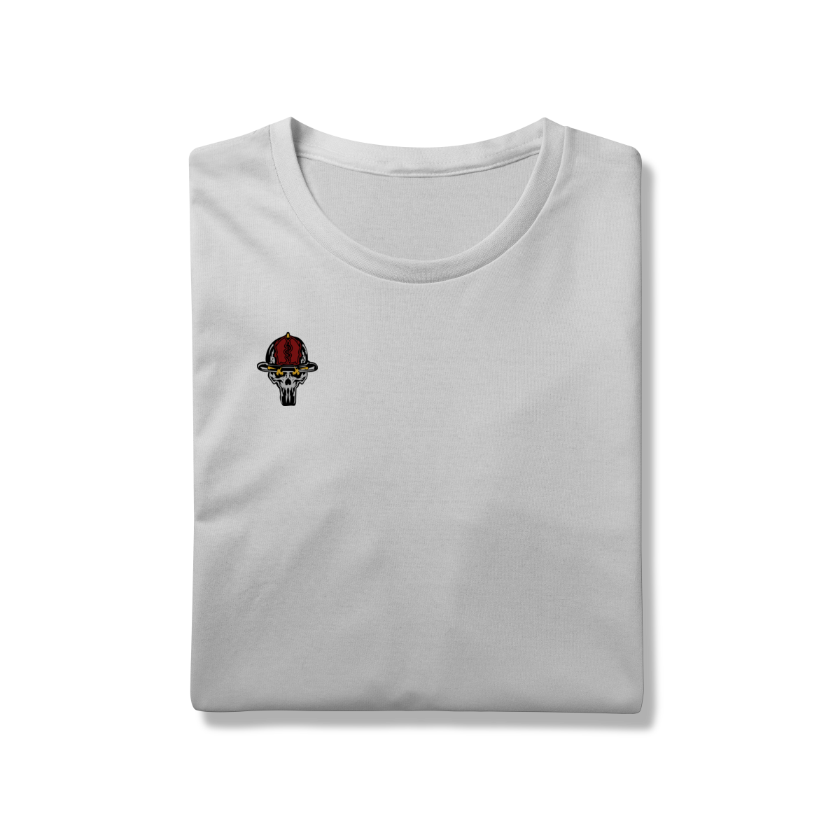 A estampa traz uma caveira operacional vestindo o tradicional uniforme preto e o capacete 22, acionando um hidrante com intensidade e postura de combate. Os detalhes em vermelho reforçam a energia do fogo, enquanto os traços marcantes destacam o clima tenso e heroico que define o serviço.