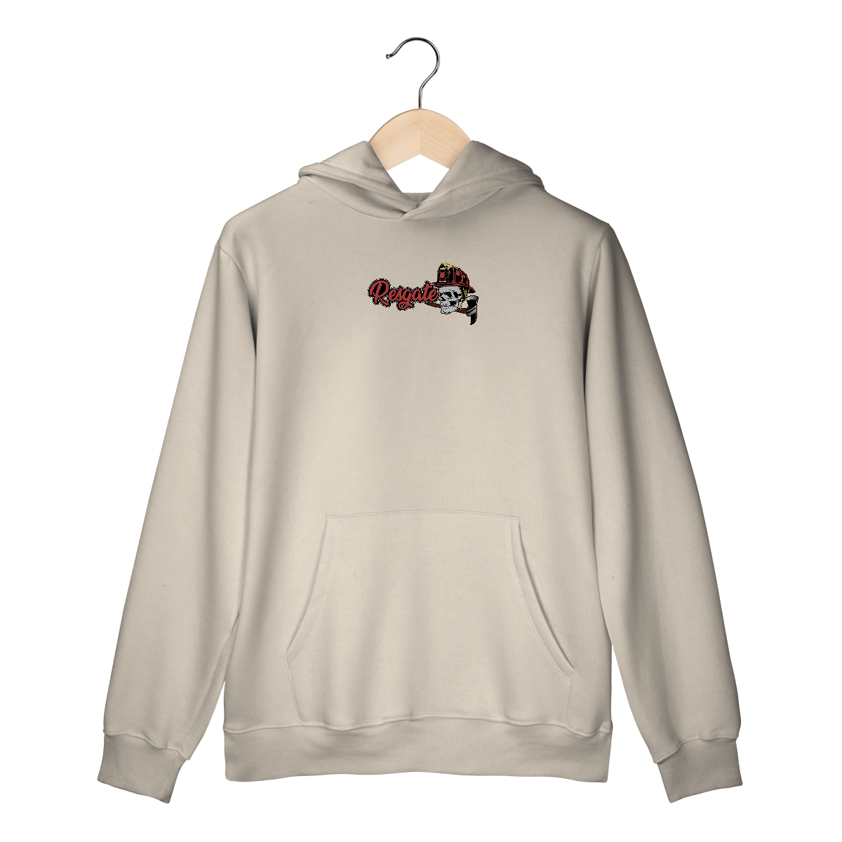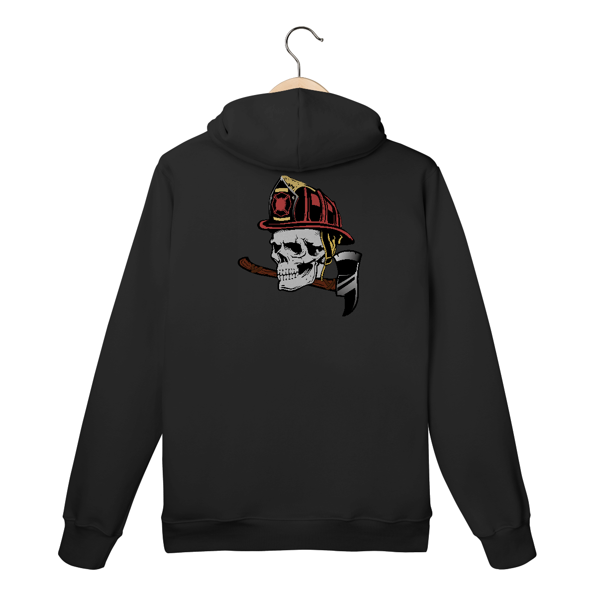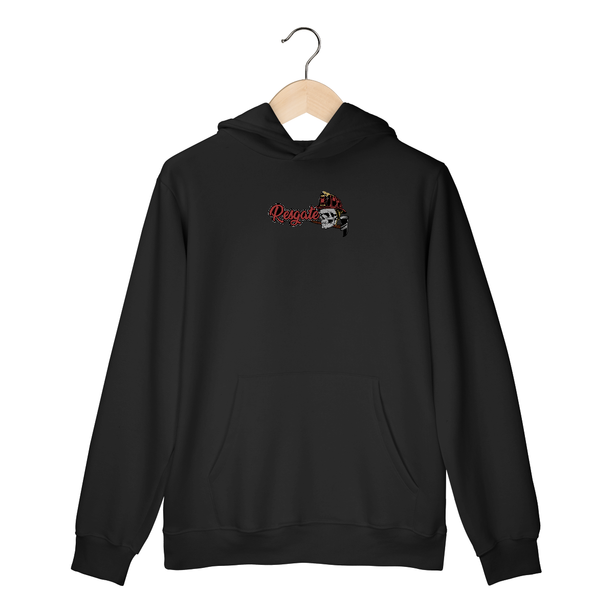Estampa com a palavra “Resgate” em destaque, combinando estilo urbano com o visual tático. A caveira com capacete de bombeiro, segurando uma ferramenta de entrada forçada (Machado), representa bravura, prontidão e a atitude implacável dos profissionais do salvamento. Ideal para quem vive o resgate com alma, coragem e honra.