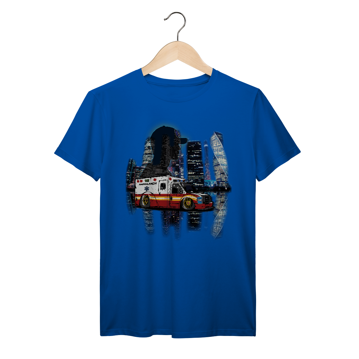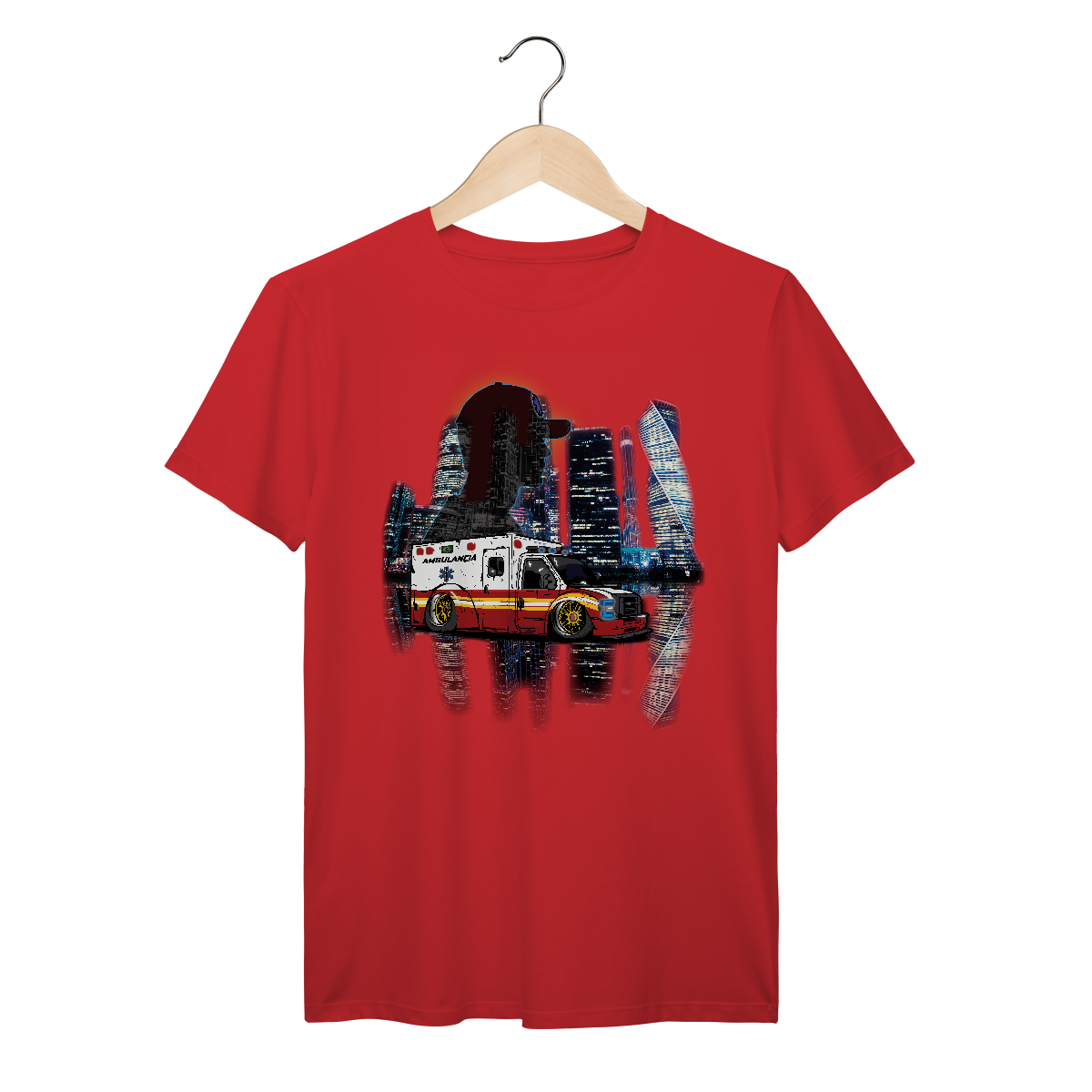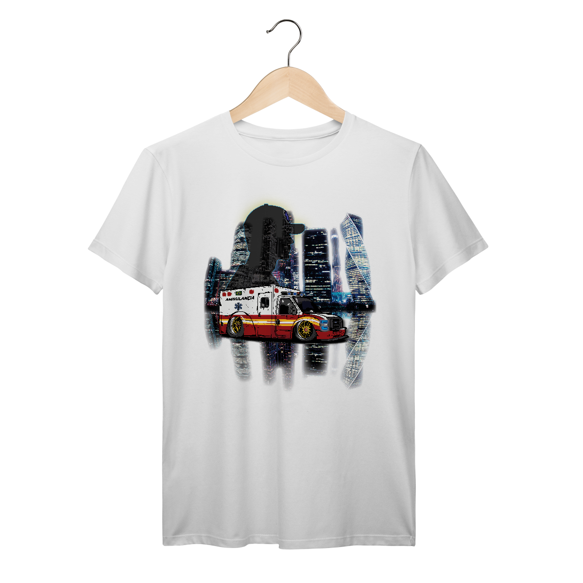 Esta arte vibrante e urbana homenageia os profissionais do resgate com estilo e atitude. Em primeiro plano, uma ambulância customizada em estilo lowrider domina a cena — com rodas esportivas, suspensão rebaixada e detalhes gráficos agressivos, ela representa a fusão entre o mundo do socorro e a cultura de rua. A bandeira do Brasil reforça o orgulho nacional dos socorristas.