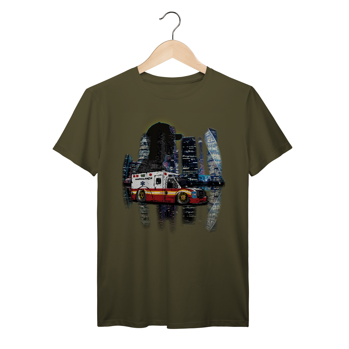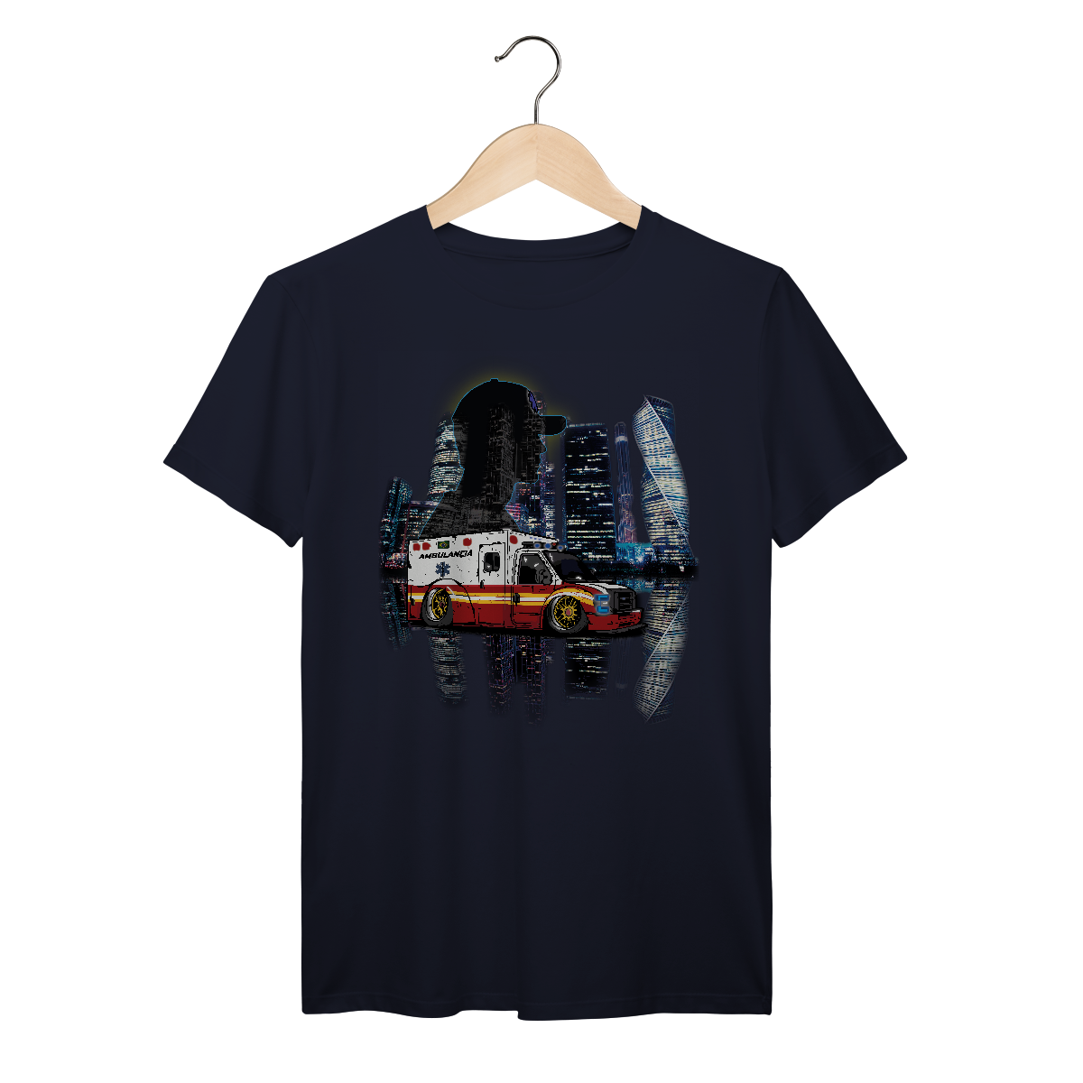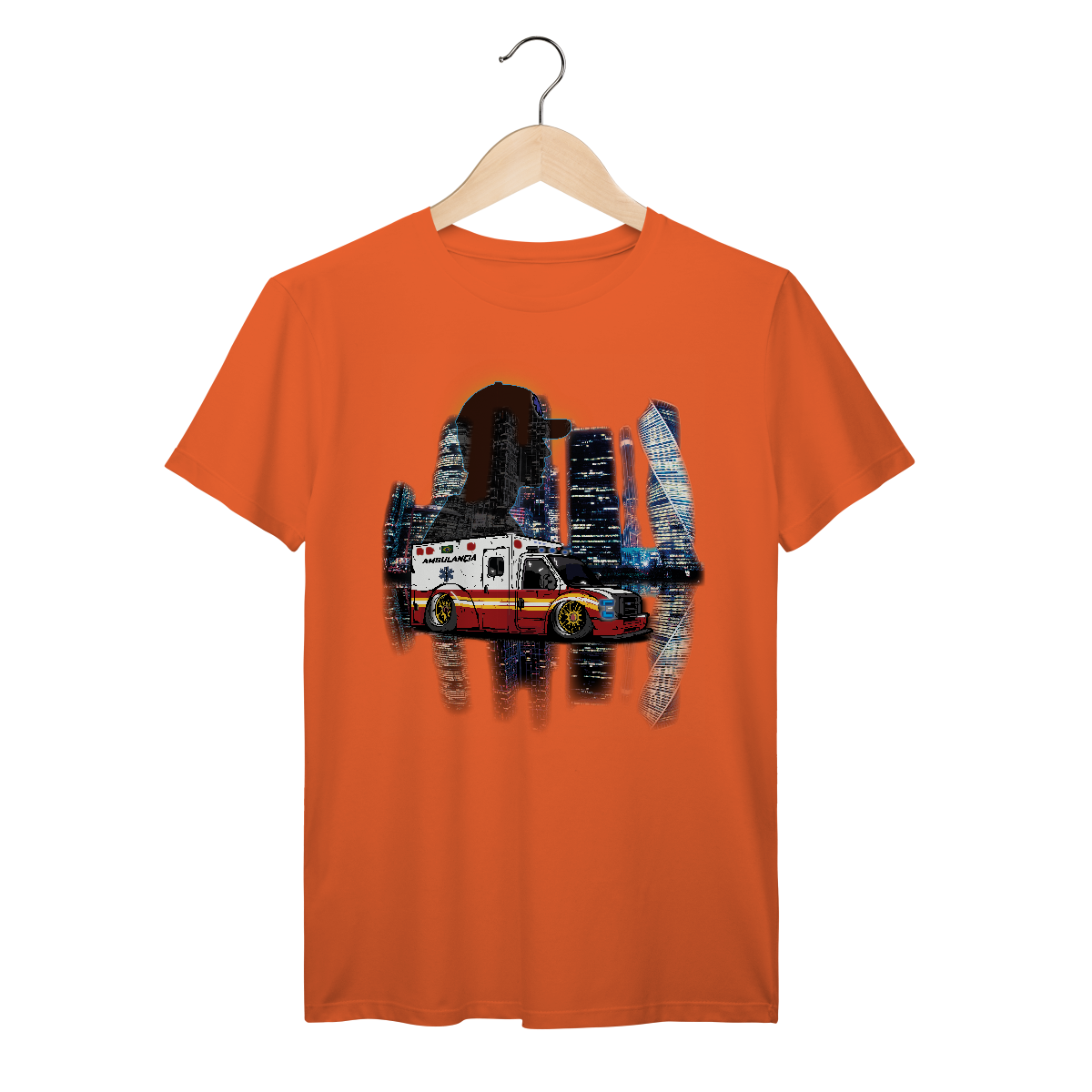 Esta arte vibrante e urbana homenageia os profissionais do resgate com estilo e atitude. Em primeiro plano, uma ambulância customizada em estilo lowrider domina a cena — com rodas esportivas, suspensão rebaixada e detalhes gráficos agressivos, ela representa a fusão entre o mundo do socorro e a cultura de rua. A bandeira do Brasil reforça o orgulho nacional dos socorristas.