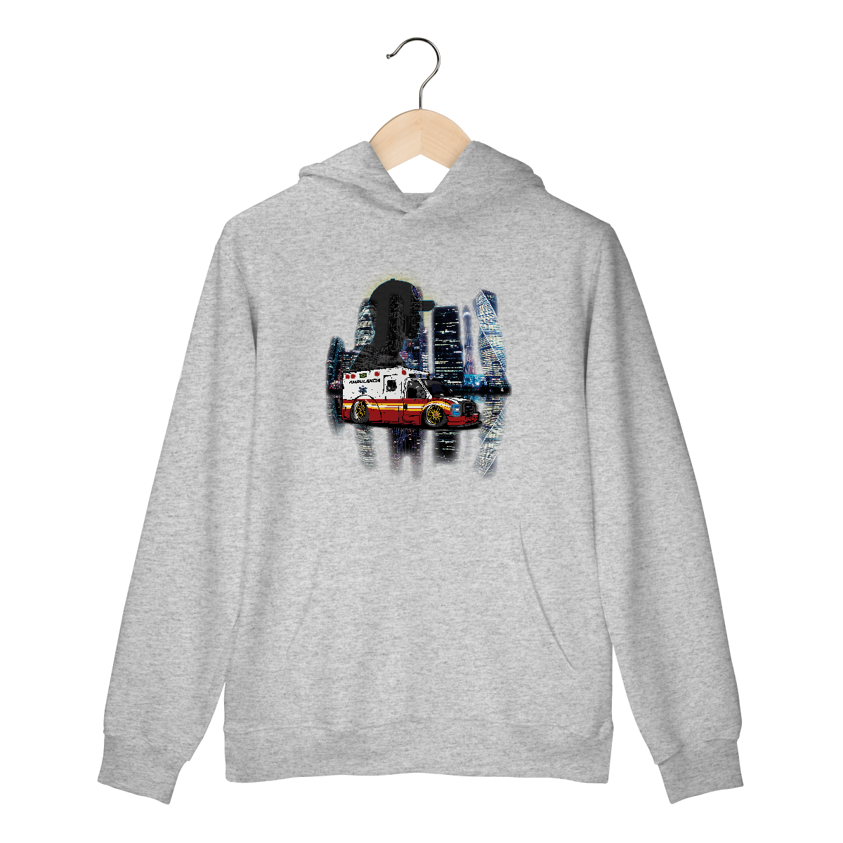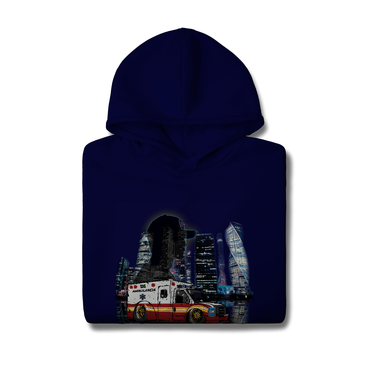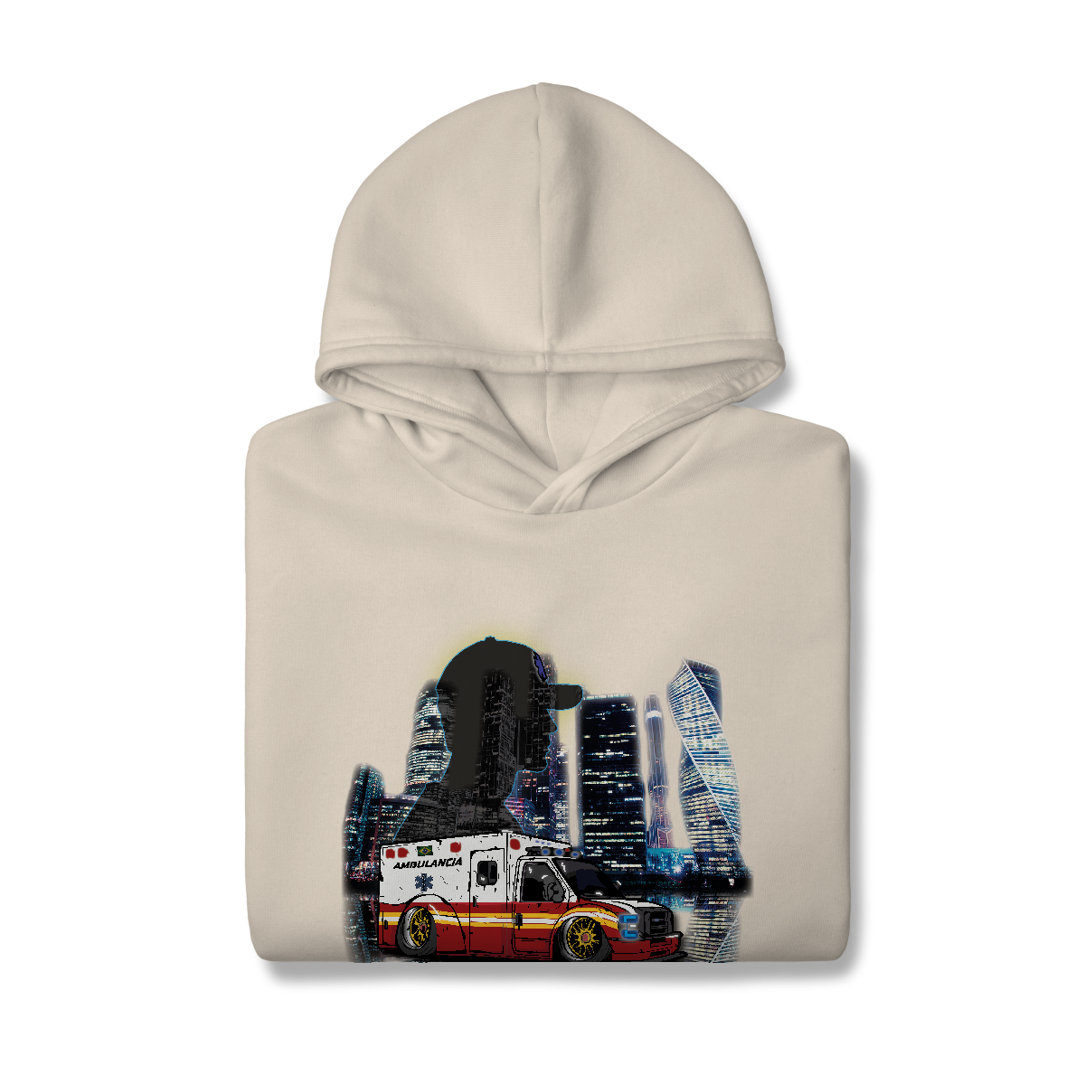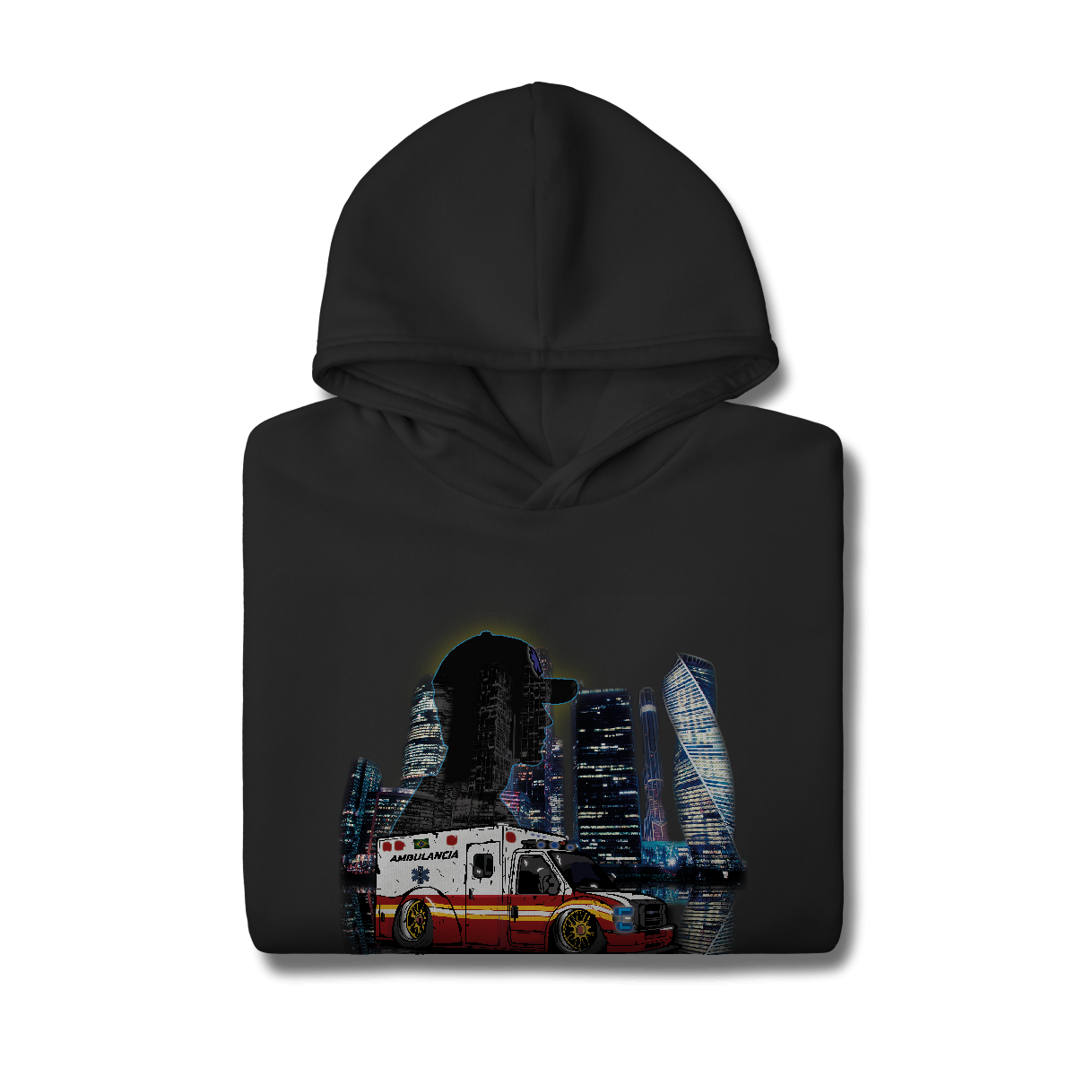 Esta arte vibrante e urbana homenageia os profissionais do resgate com estilo e atitude. Em primeiro plano, uma ambulância customizada em estilo lowrider domina a cena — com rodas esportivas, suspensão rebaixada e detalhes gráficos agressivos, ela representa a fusão entre o mundo do socorro e a cultura de rua. A bandeira do Brasil reforça o orgulho nacional dos socorristas.