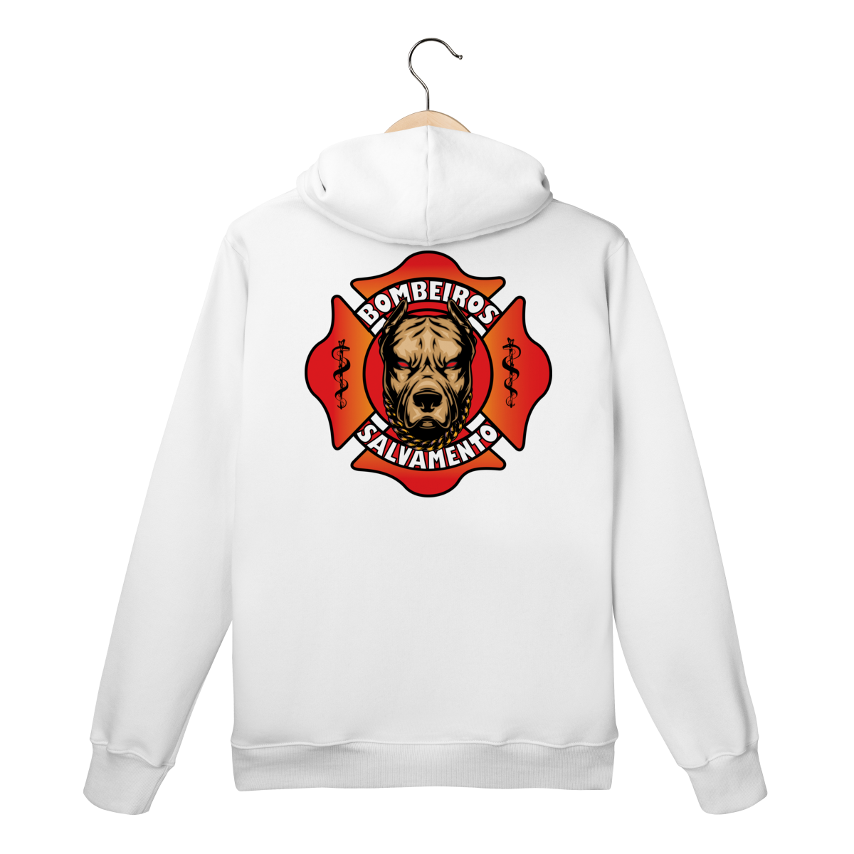 Estampa poderosa que une a força e a lealdade representadas pela figura de um cão imponente, dentro da cruz de malta dos bombeiros. Com tons quentes em vermelho e laranja, o design transmite coragem, proteção e a missão incansável de salvar vidas em qualquer situação de emergência.