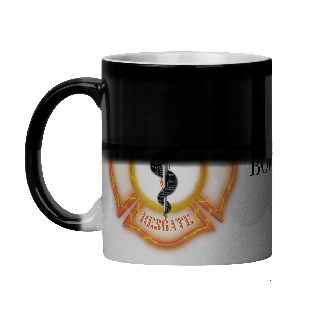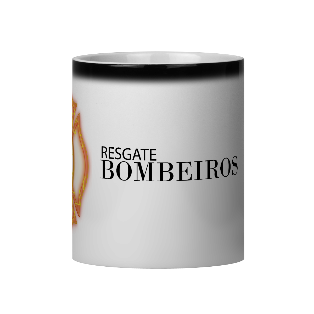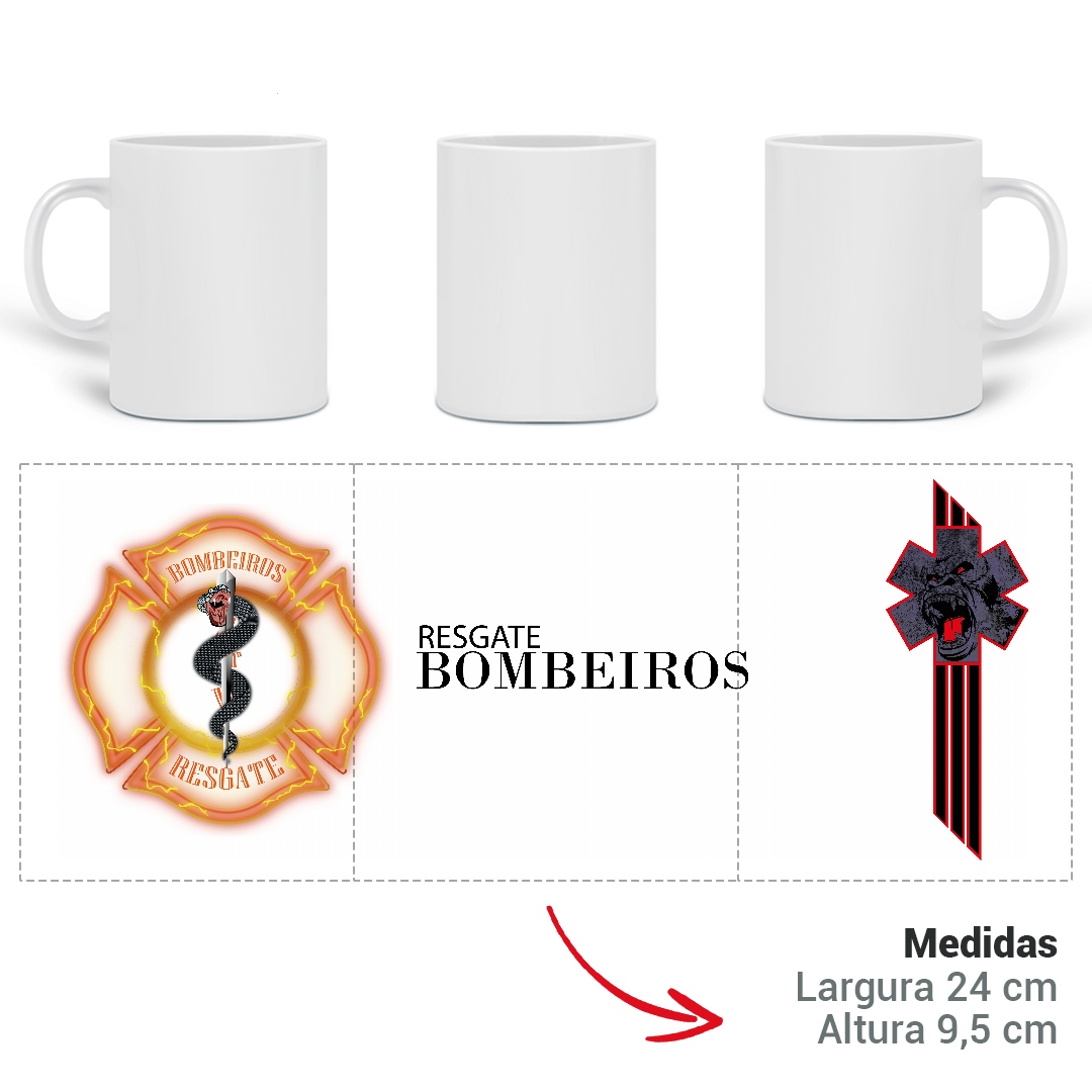 • Texto “BOMBEIROS RESGATE” em tipografia curva e forte, nas partes superior e inferior da cruz.