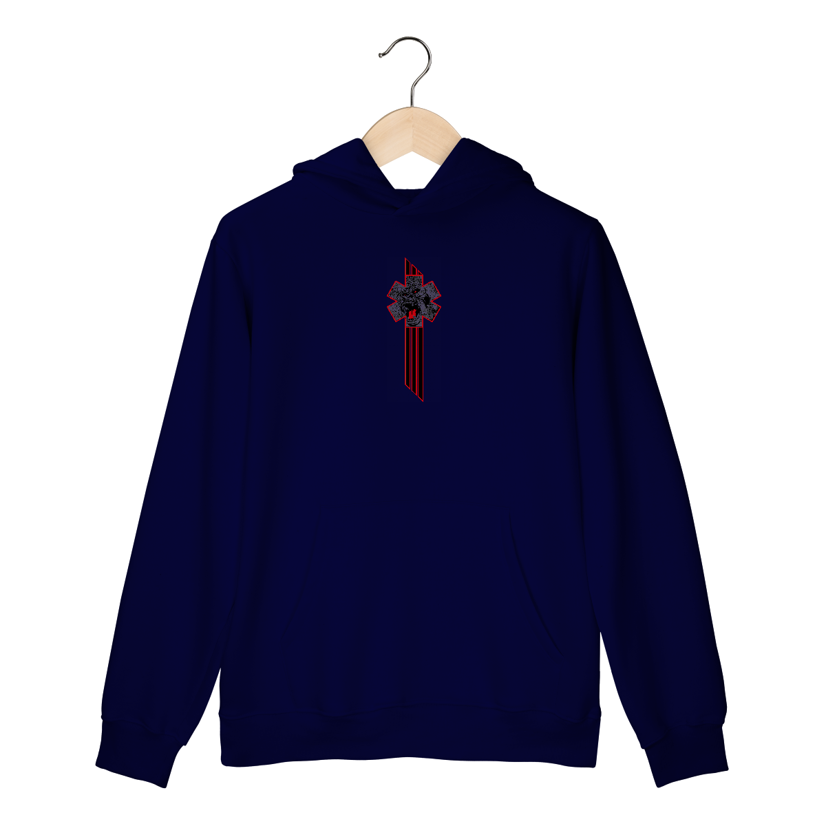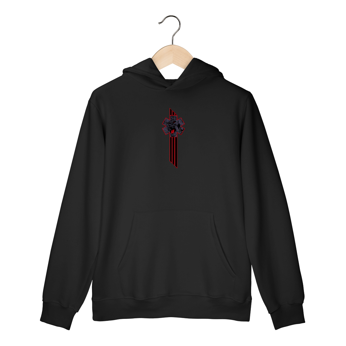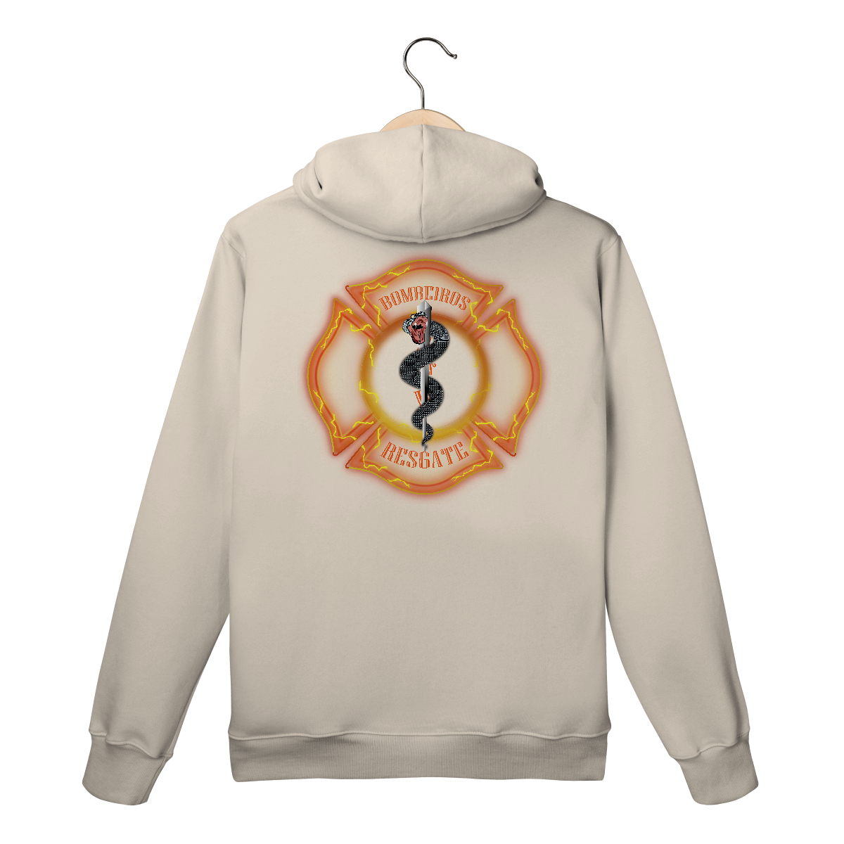 • Texto “BOMBEIROS RESGATE” em tipografia curva e forte, nas partes superior e inferior da cruz.