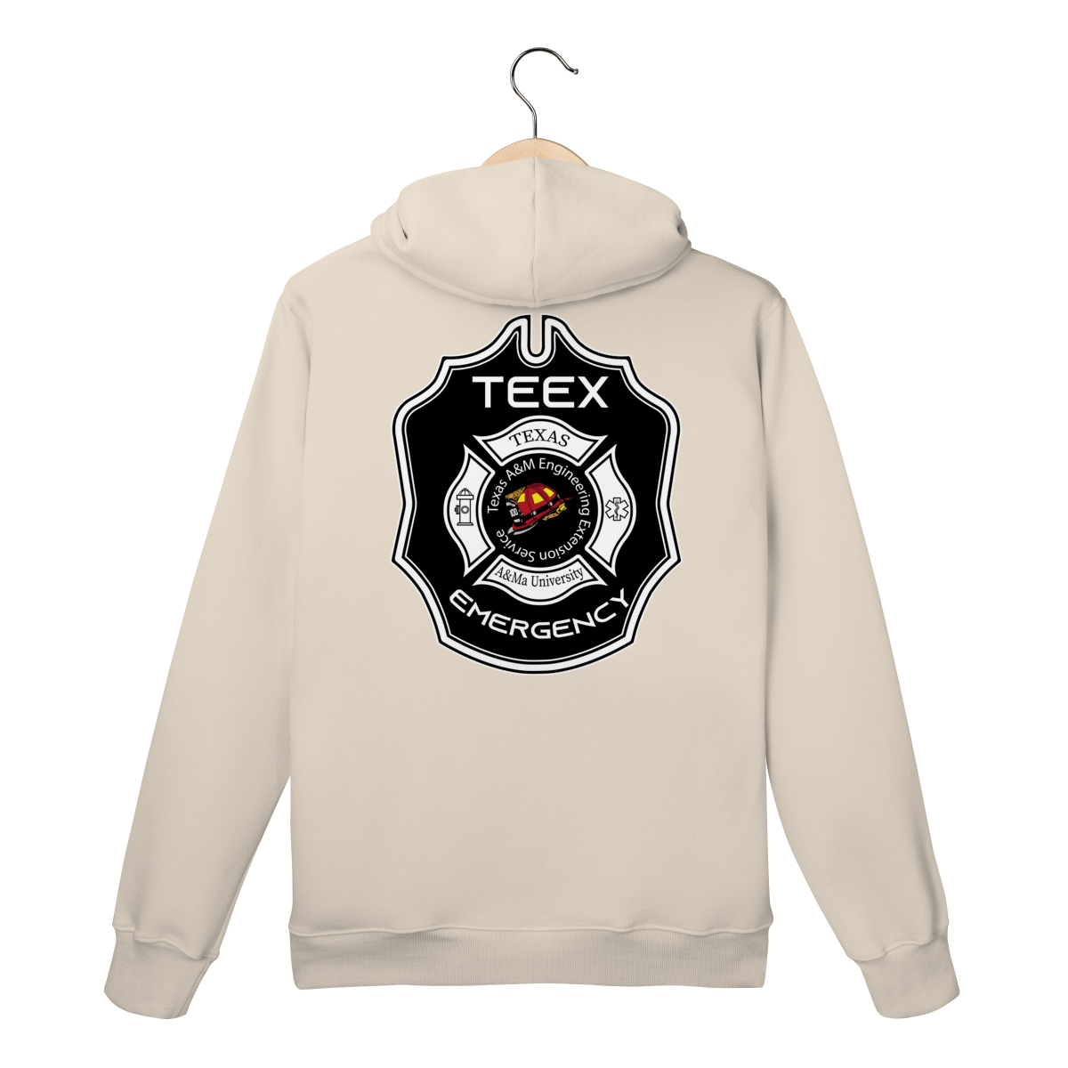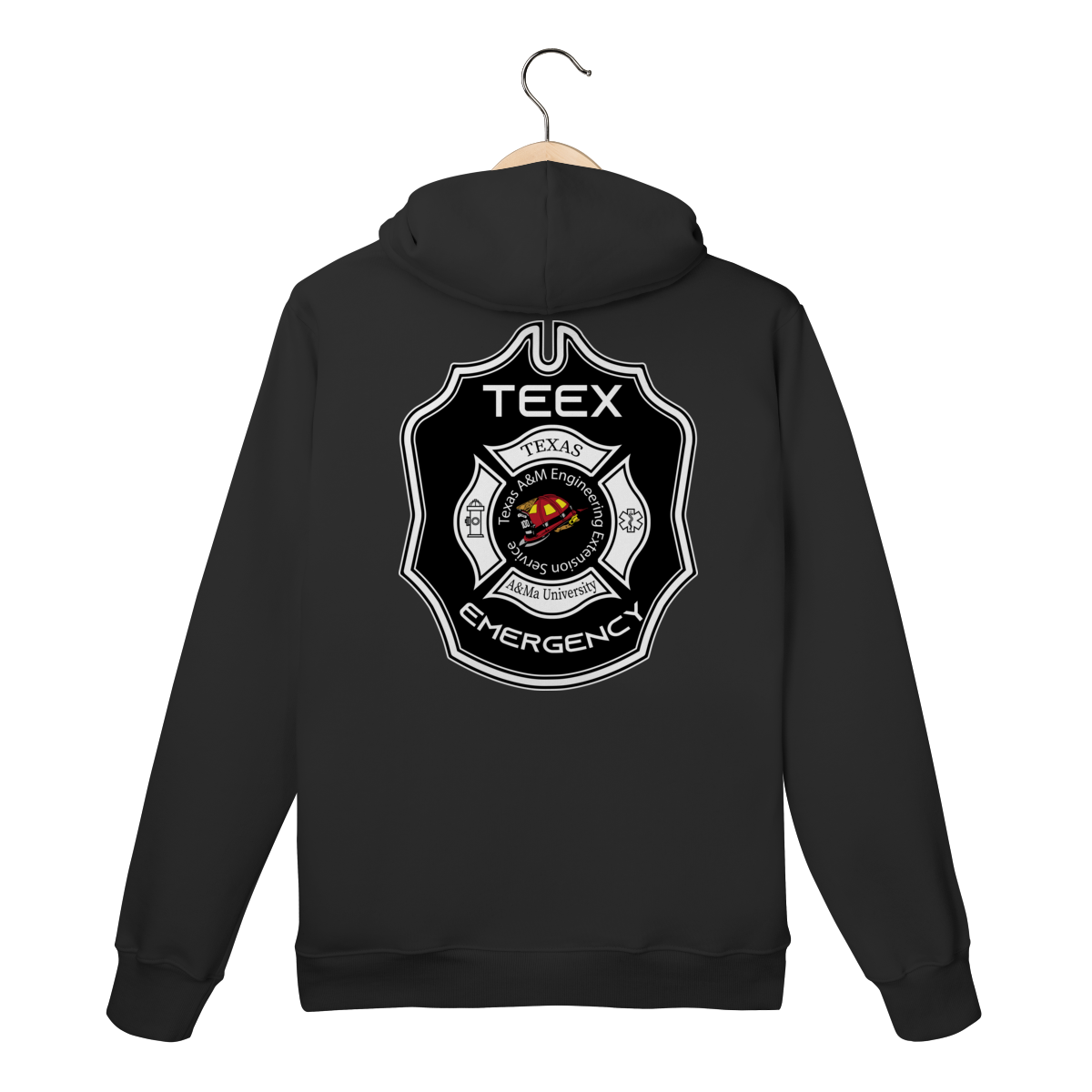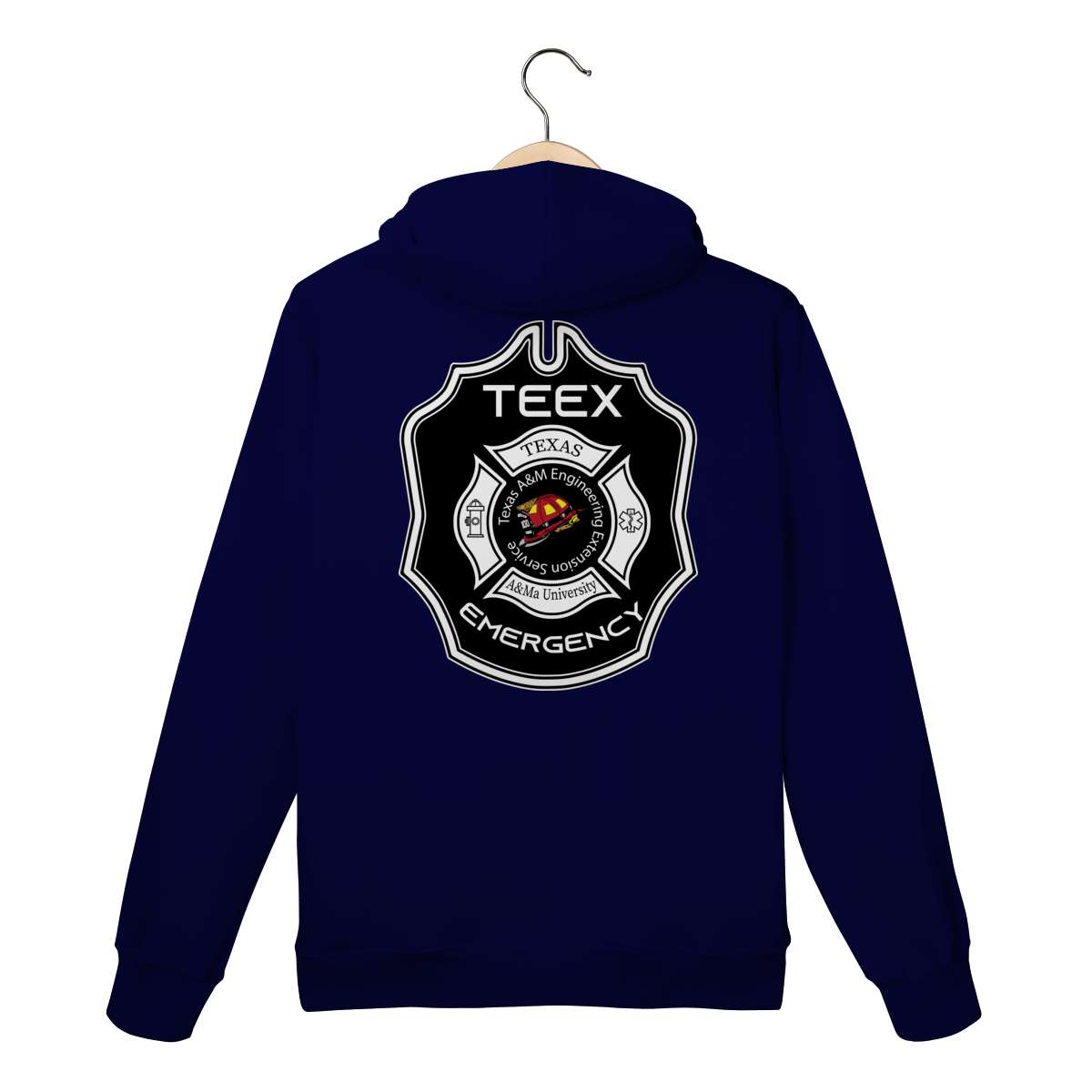 A camiseta TEEX Emergency é inspirada no emblema oficial da Texas A&M Engineering Extension Service, referência mundial em treinamentos de bombeiros, resgate e serviços de emergência.