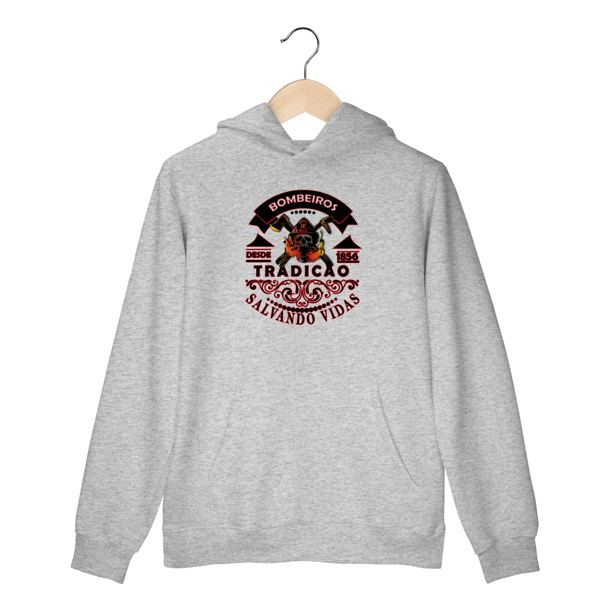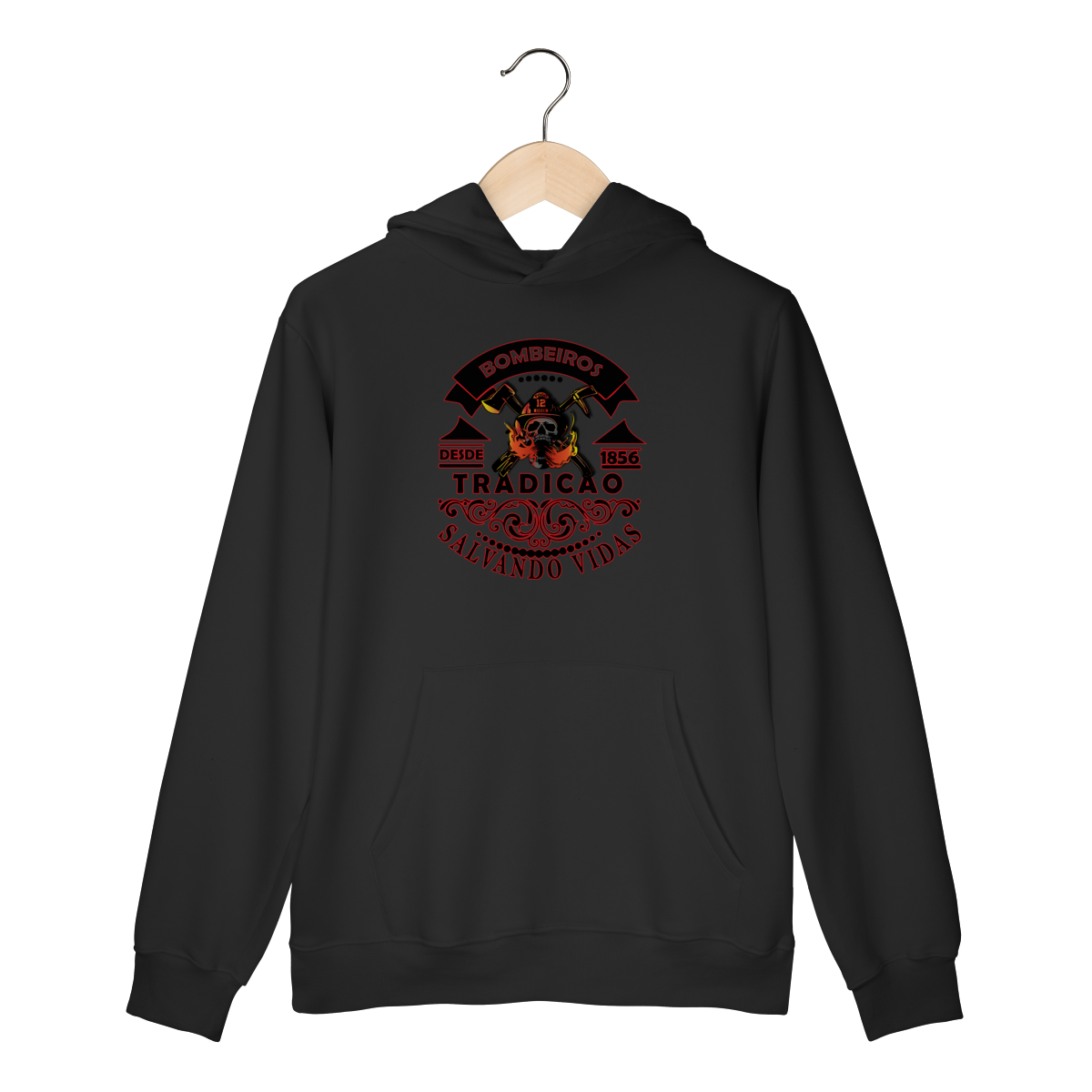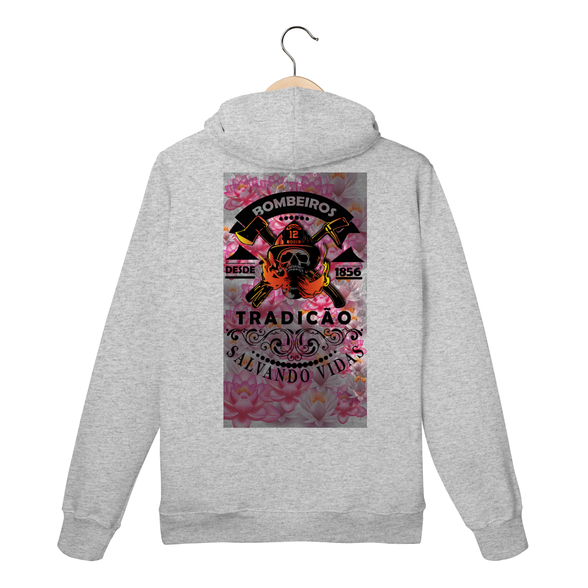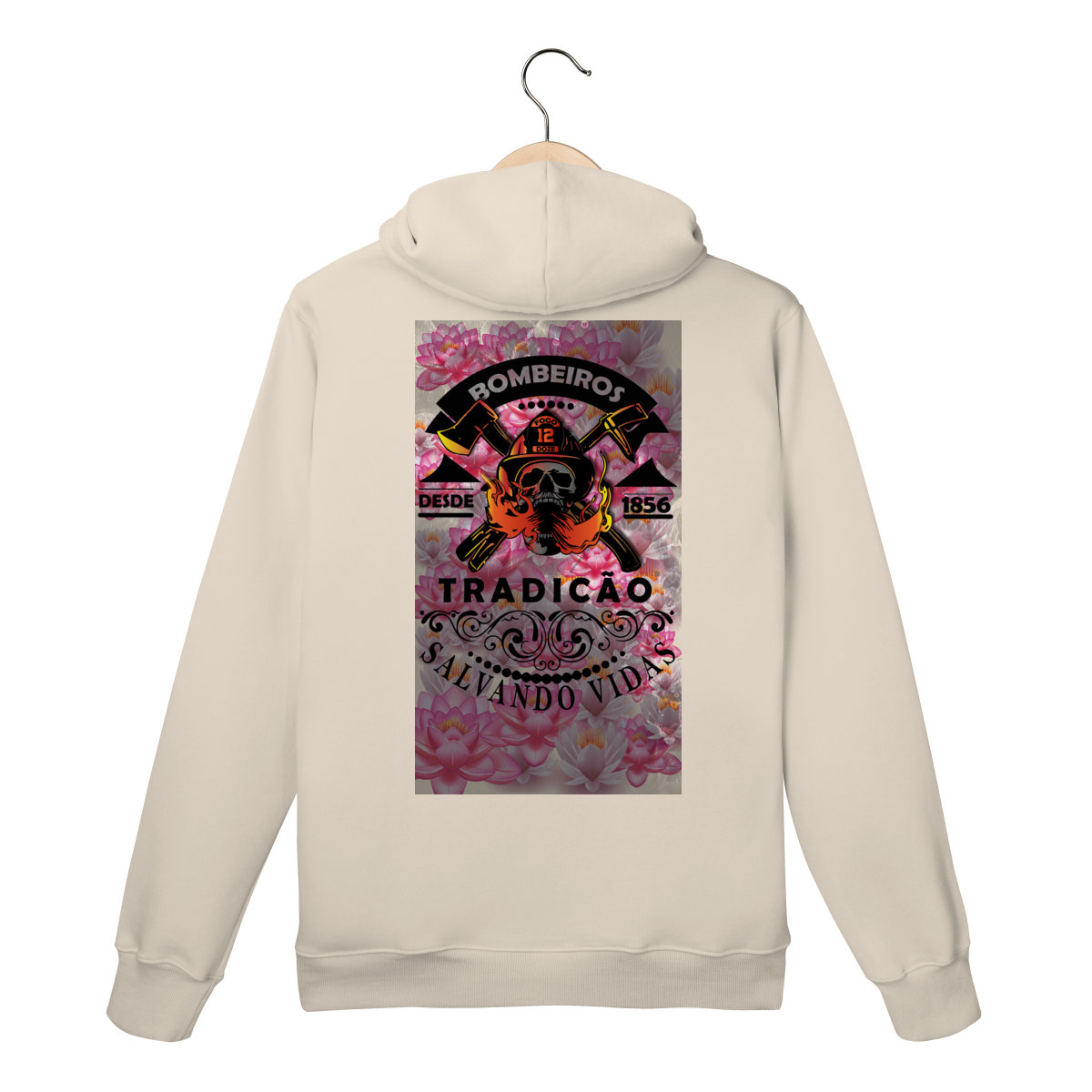 A estampa “Tradição – Salvando Vidas desde 1856” é uma homenagem à bravura e ao legado dos bombeiros. Com um design marcante que combina força, tradição e coragem, ela traz a caveira com capacete, machados cruzados e chamas em destaque, representando a luta diária contra o fogo.